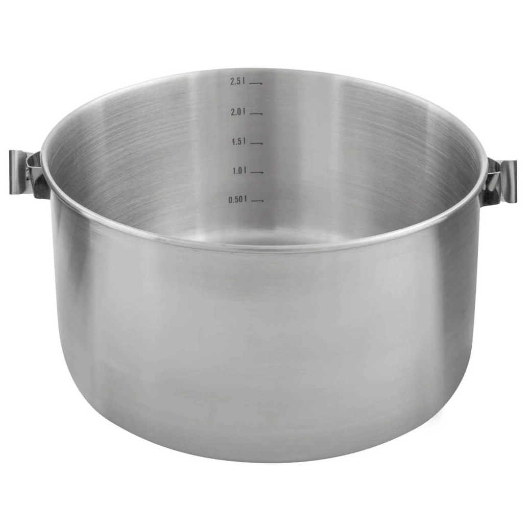 Wieko garnka ma zintegrowane sitko, które ułatwia odcedzanie wody z makaronu lub warzyw. Wewnątrz naczynia znajduje się miarka, dzięki czemu można dokładnie dawkować wodę lub surowce zgodnie z przepisem. Dzięki swojej wytrzymałości, przemyślanym detalom i pojemności 2,5 litra stanie się niezawodnym pomocnikiem we wszystkich Twoich podróżach.