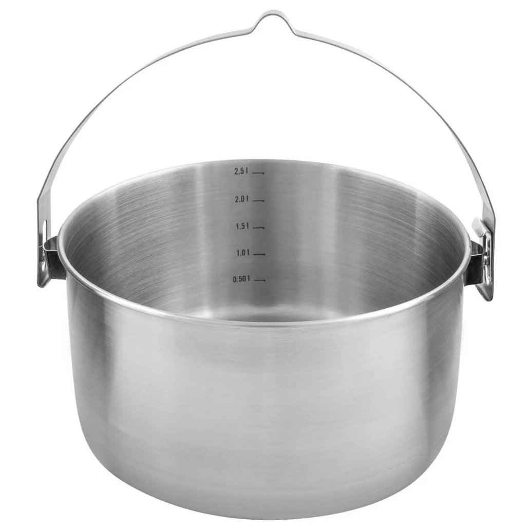 Czajnik II 2,5 l marki Tatonka to praktyczny, nierdzewny garnek o pojemności 2,5 litra, który docenisz podczas każdego gotowania na świeżym powietrzu. Wykonany jest z wysokiej jakości stali 18/8, jest wytrzymały, bezpieczny dla żywności i całkowicie nietoksyczny, bez PFC/PFAS. Dzięki solidnej konstrukcji jest praktycznie niezniszczalny i łatwy w czyszczeniu, dzięki czemu nadaje się na trekking, kemping i festiwale.