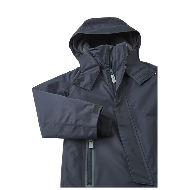 Kombinezon ma odpinany i regulowany kaptur, który chroni przed wiatrem i jest bezpieczny podczas aktywności na świeżym powietrzu, ponieważ kaptur przymocowany za pomocą zatrzasków. Można go zatem łatwo zdjąć, jeśli o coś zahaczy. Kieszenie zapinane na zamek, kieszeń na karnet narciarski na rękawie. Materiał kombinezonu odpycha brud i może wytrzymać pranie w razie potrzeby. Ten funkcjonalny, wysokiej jakości kombinezon zimowy jest uzupełniony odblaskowymi detalami.