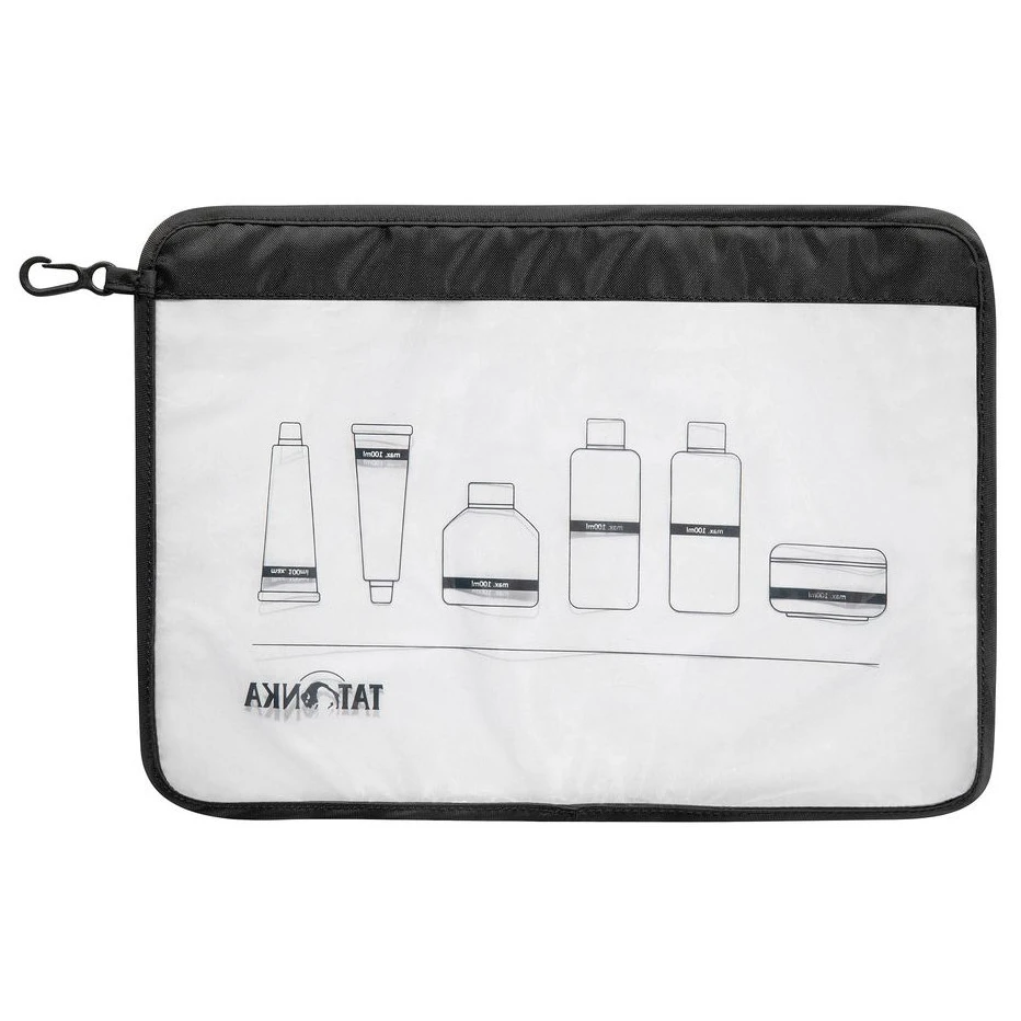 Kosmetyczka Zamek Flight Bag A4 marki Tatonka to praktyczne rozwiązanie do transportu płynów, kremów i kosmetyków w bagażu podręcznym, zgodnie z przepisami bezpieczeństwa lotniczego. Torba jest wykonana z wytrzymałego i wysokiej jakości przezroczystego winylu, dzięki czemu spełnia aktualne wytyczne dotyczące przewozu płynów (maks. 100 ml na opakowanie).