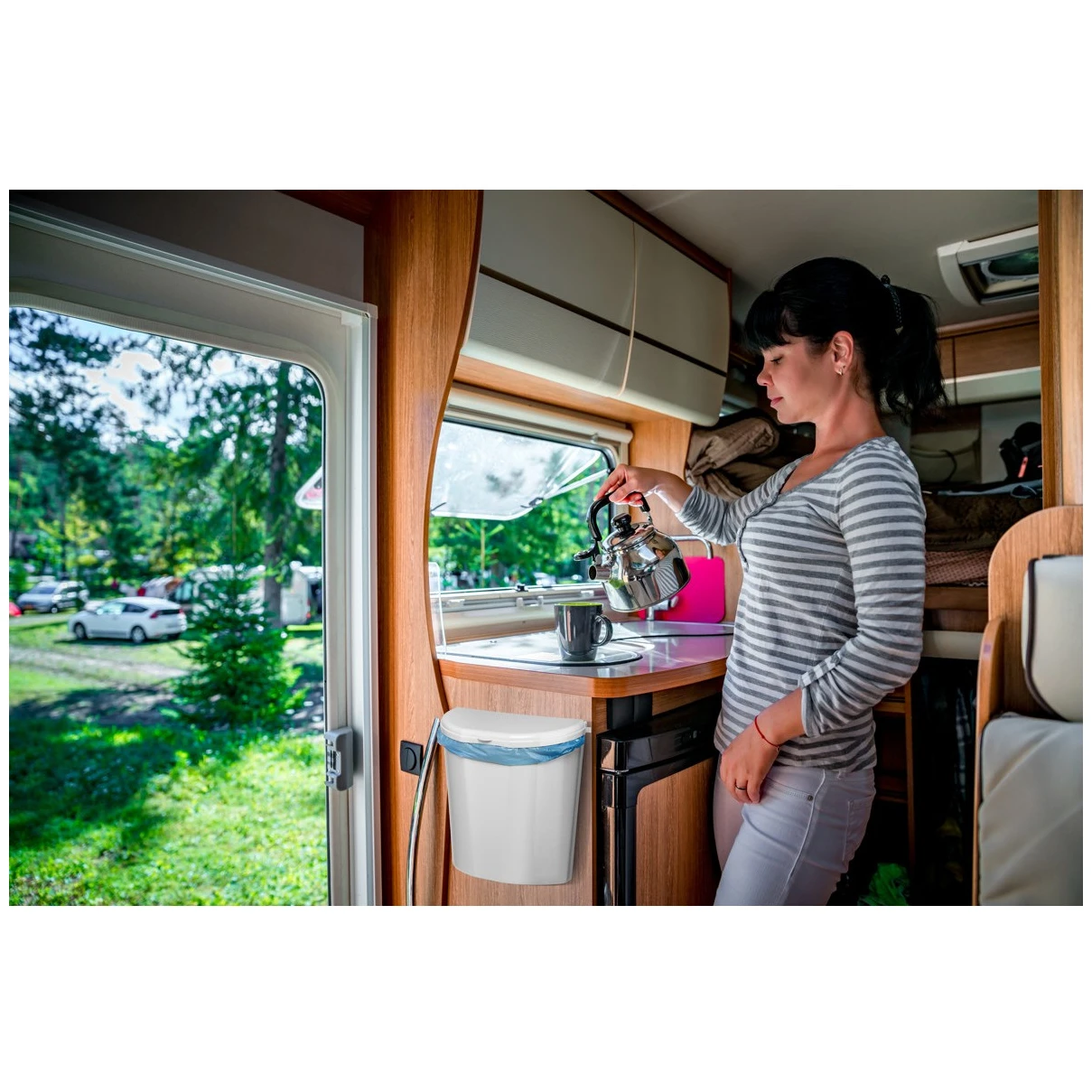 Pillar XL z Brunner to poręczny kosz na śmieci, który może być używany w drodze, w ogrodzie lub na łodzi.