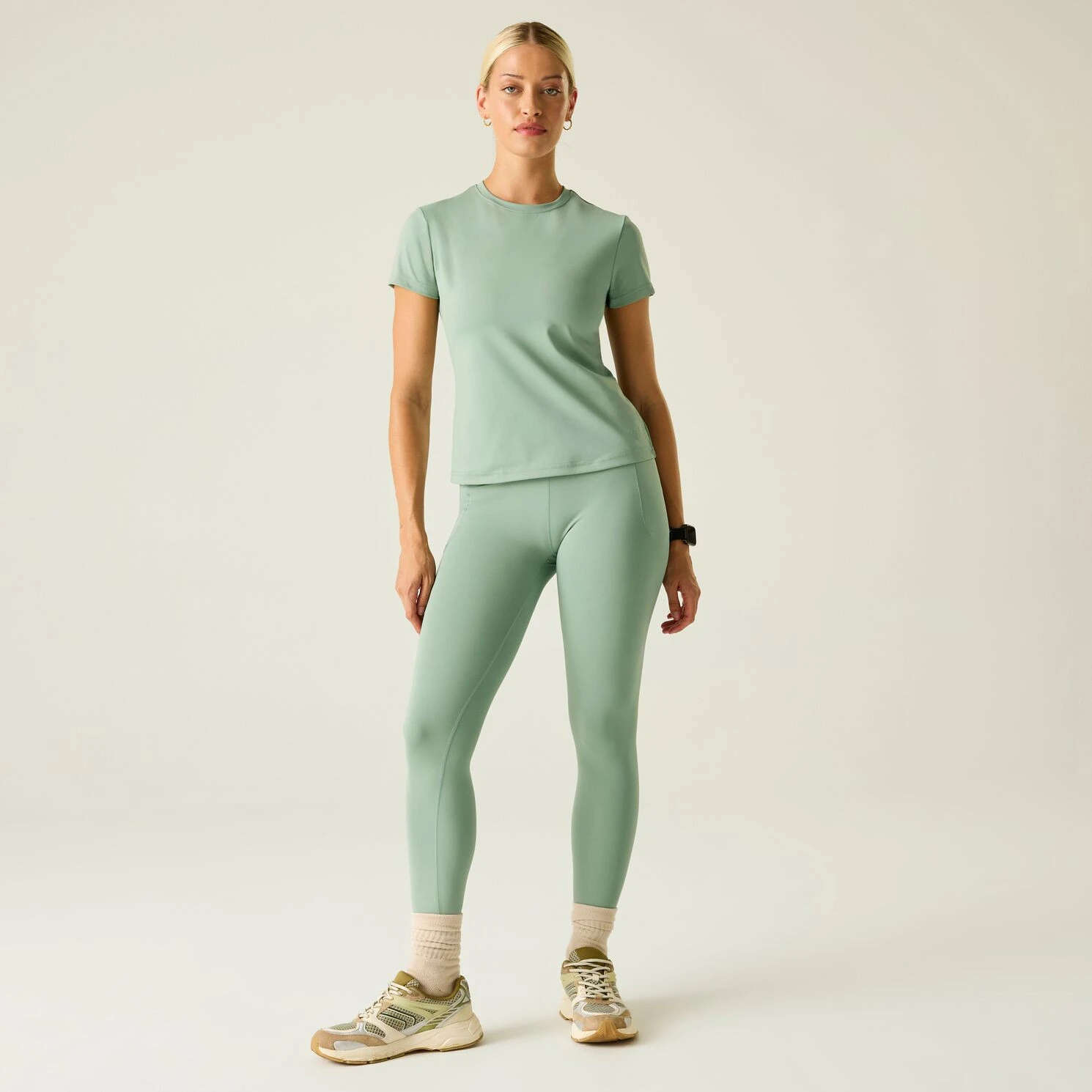 Super miękka i elastyczna tkanina z poliestru z recyklingu z elastanem dopasowuje się do Twoich ruchów i jest przyjemna w dotyku. Materiał szybko schnie i pomaga utrzymać uczucie świeżości nawet przy większym obciążeniu, podczas gdy antybakteryjne wykończenie bez syntetycznych chemikaliów ogranicza powstawanie nieprzyjemnych zapachów.
