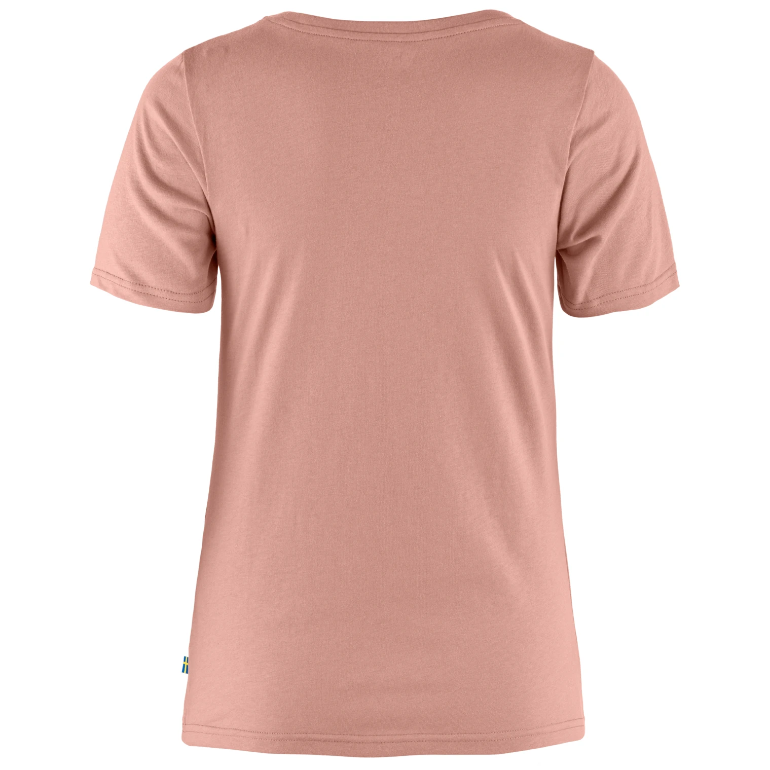 Damski T-shirt 1960 Logo W od marki Fjällräven z krótkim rękawem został wykonany z ekologicznej dzianiny dżersejowej, która łączy w sobie miękkość bawełny organicznej z funkcjonalnością i trwałością poliestru pochodzącego z recyklingu. Odprowadza wilgoć i szybko schnie, dzięki czemu jest niezwykle wygodna w ciepłym klimacie. Ponadto okrągły dekolt i małe logo nadrukowane na piersi wyglądają bardzo elegancko.