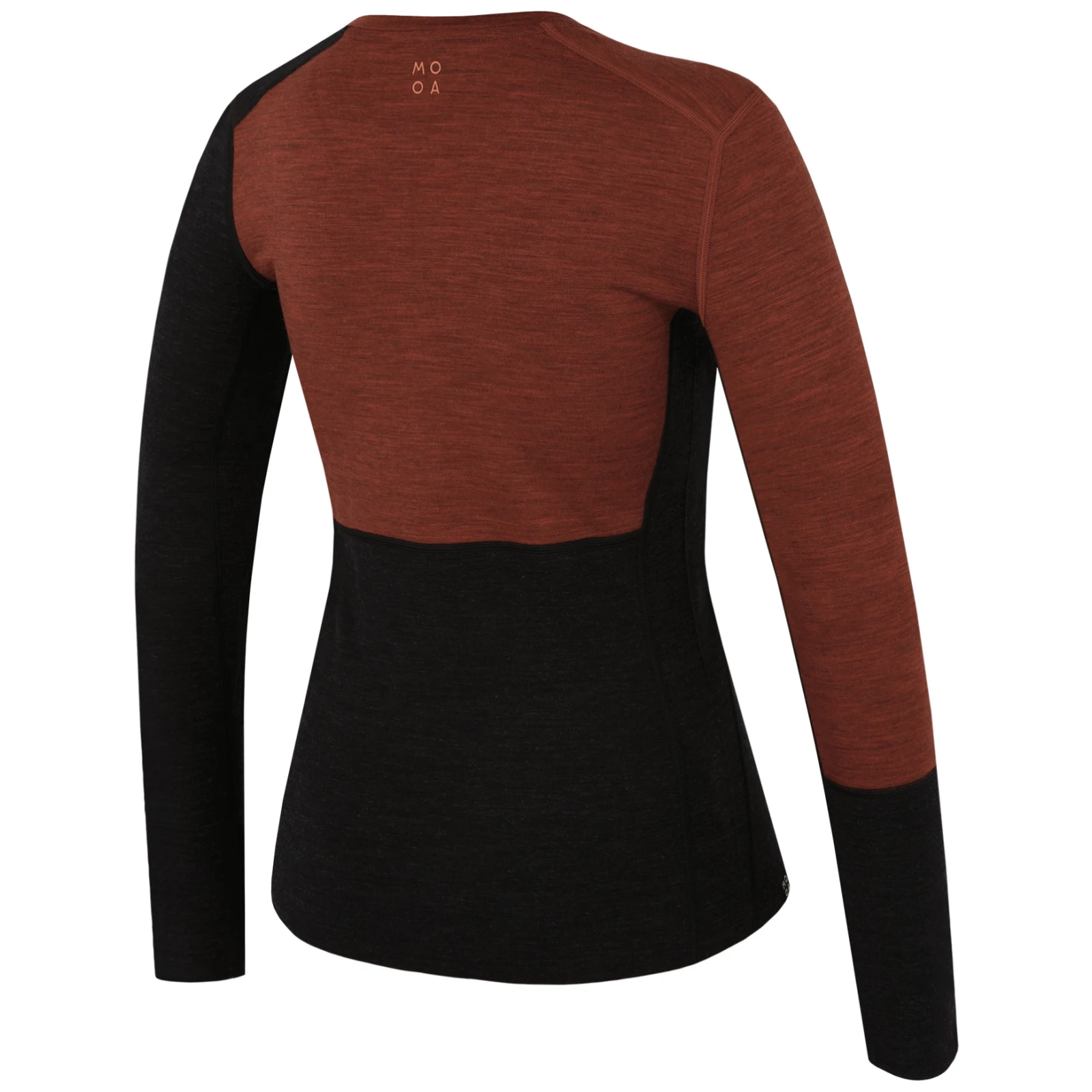 Koszulka damska z długim rękawem MOOA MerinoSilk Block 160 Long dzięki połączeniu merino i jedwabiu zapewnia oddychalność, miękkość i komfort podczas każdej aktywności.