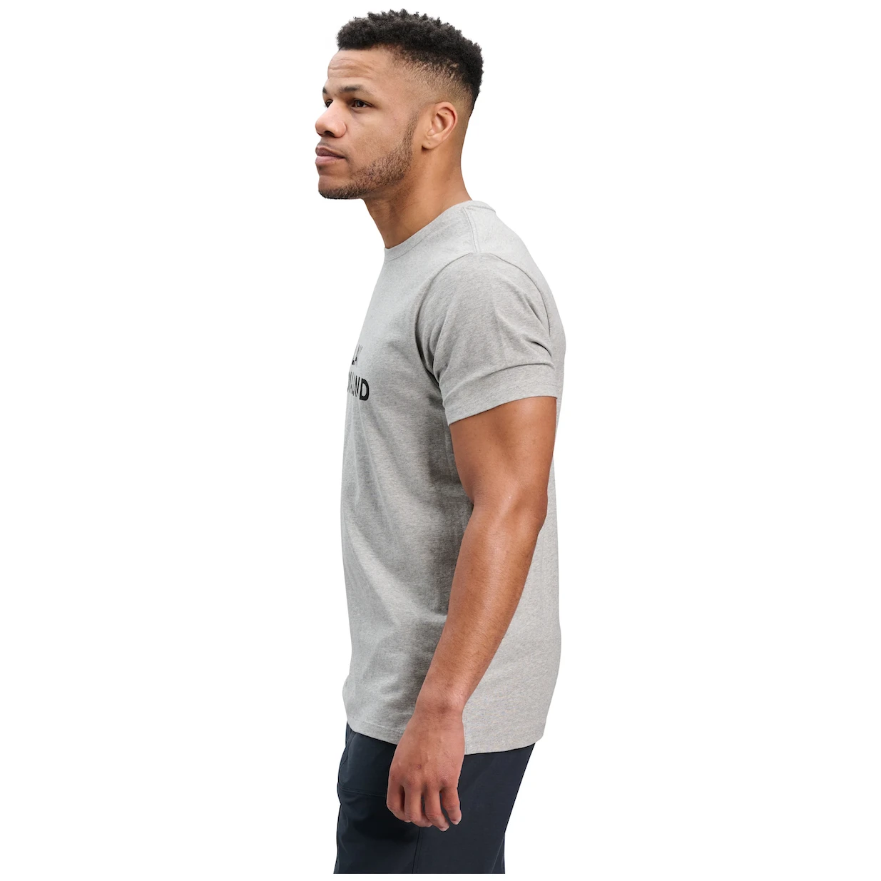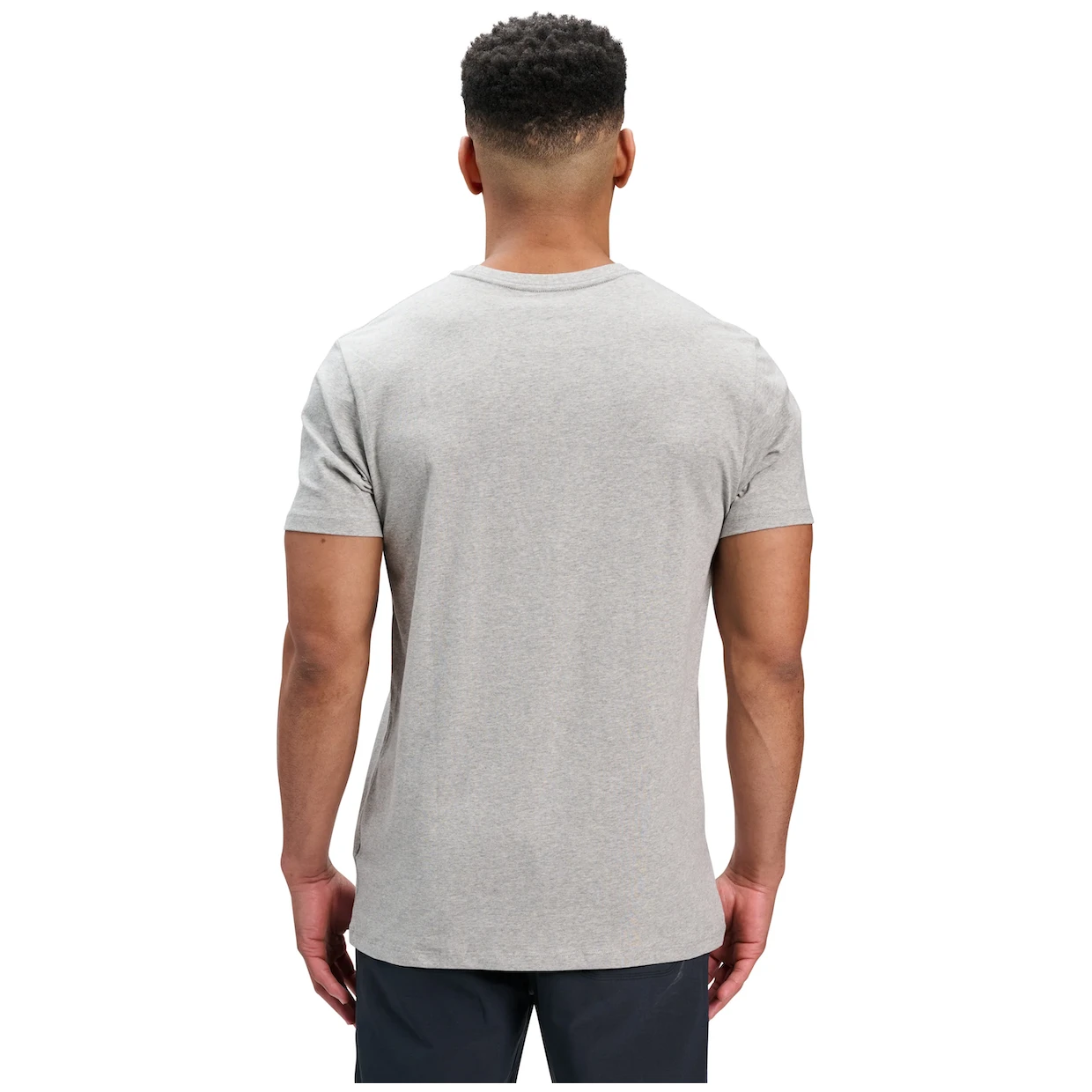Klasyczny męski t-shirt M Mini Stacked Ss Tee marki Black Diamond z zawartością bawełny organicznej. T-shirt ma regularny krój i logo na piersi, co czyni go uniwersalnym elementem Twojej garderoby.
