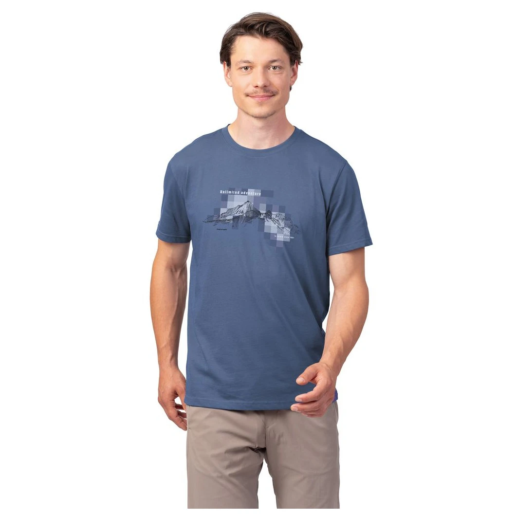 Męska koszulka Luke Hannah ze 100% bawełny organicznej oferuje wygodny, luźny krój, subtelny nadruk, lekkość i wysoką oddychalność.