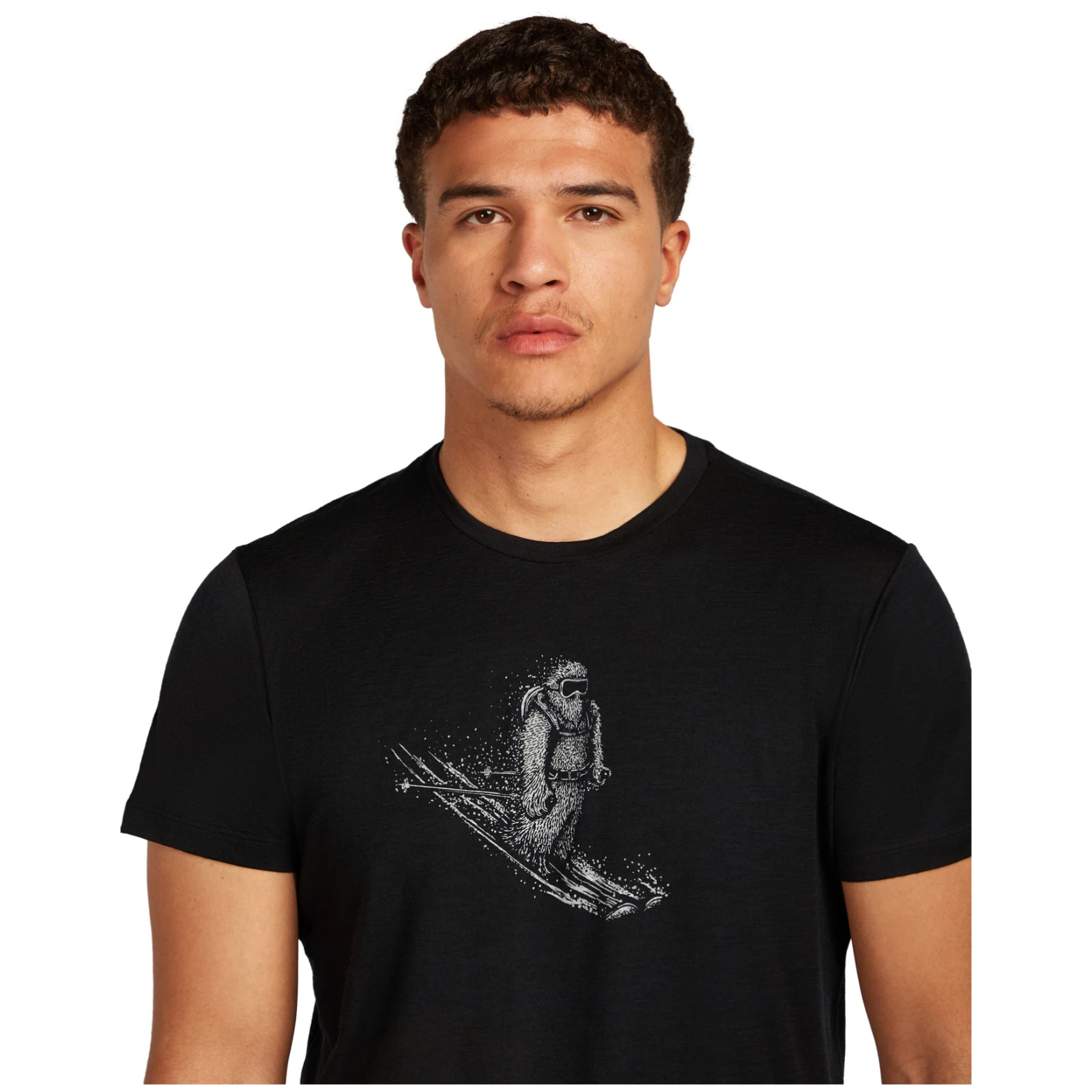 Oprócz tego, że materiał jest wysoce oddychający, doskonale odpiera zapachy. Dzięki temu możesz bez obaw wyruszyć na każdą przygodę. Wygodę podczas noszenia plecaka zapewniają przesunięte szwy na ramionach, które zmniejszają tarcie. Oryginalna grafika z jeżdżącym na nartach Yeti dodaje koszulce wyjątkowego i zabawnego stylu, który nawiązuje do wizualnej identyfikacji marki.