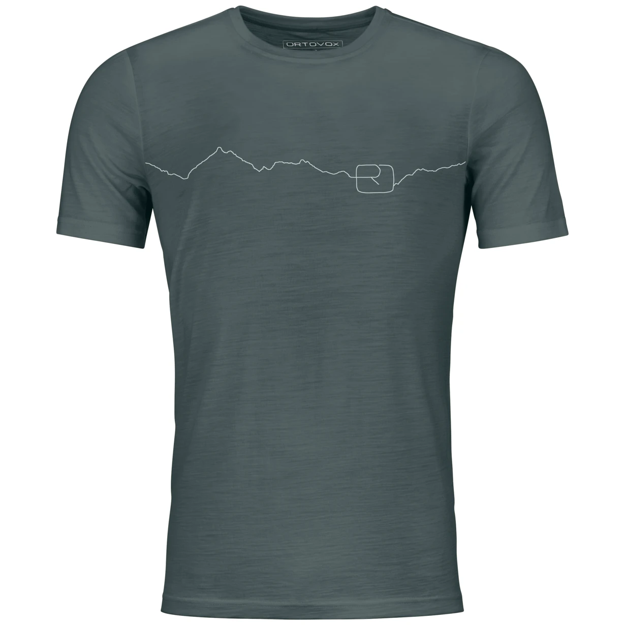 Męska koszulka Koszulka z krótkim rękawem 150 Cool Mountain Ts M Brand Ortovox to doskonały wybór do wszystkich aktywności sportowych na szczytach gór, a także stylowy nadruk panoramy górskiej. Koszulka jest wykonana z połączenia wysokiej jakości wełny merynosów tasmańskich, lyocellu i poliamidu z technologią beta-spun, która znacznie wydłuża żywotność użytych włókien.