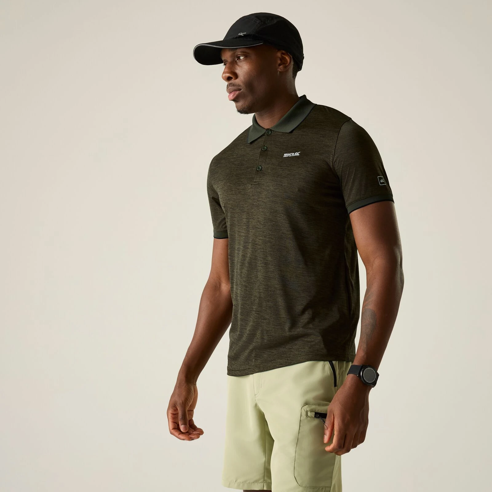 Męska koszulka polo Regatta Remex II ma prążkowany kołnierzyk i logo marki na piersi. Wykonana jest z szybkoschnącego poliestru z dżersejowym wykończeniem, który jest bardzo wygodny i nie marszczy się.