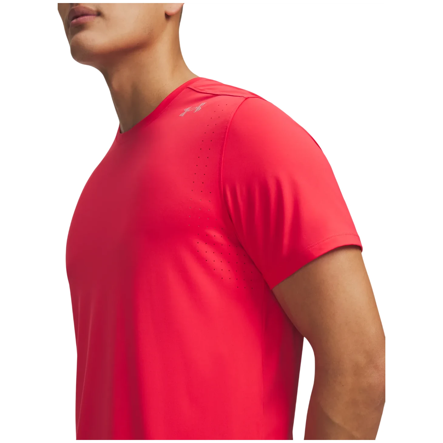 Dzięki zaawansowanemu materiałowi zapewnisz sobie szybkie odprowadzanie potu i skuteczne schnięcie, co pomoże Ci utrzymać uczucie suchości nawet przy wysokiej intensywności. Jednocześnie koszulka jest bardzo przewiewna, co zapewnia lepszą regulację temperatury podczas ruchu. Tkanina Iso-Chill pomaga rozpraszać ciepło, jest chłodna w dotyku i tym samym pomaga utrzymać ciało w komforcie termicznym. Perforacje laserowe i oddychający boczny panel zwiększają przepływ powietrza. Technologia 4-Way Stretch zapewnia elastyczność, a tym samym swobodę ruchów. Ergonomiczny krój przyczynia się do wygody i wspiera naturalny zakres ruchu. Materiał posiada ochronę przed promieniowaniem UV UPF 30.