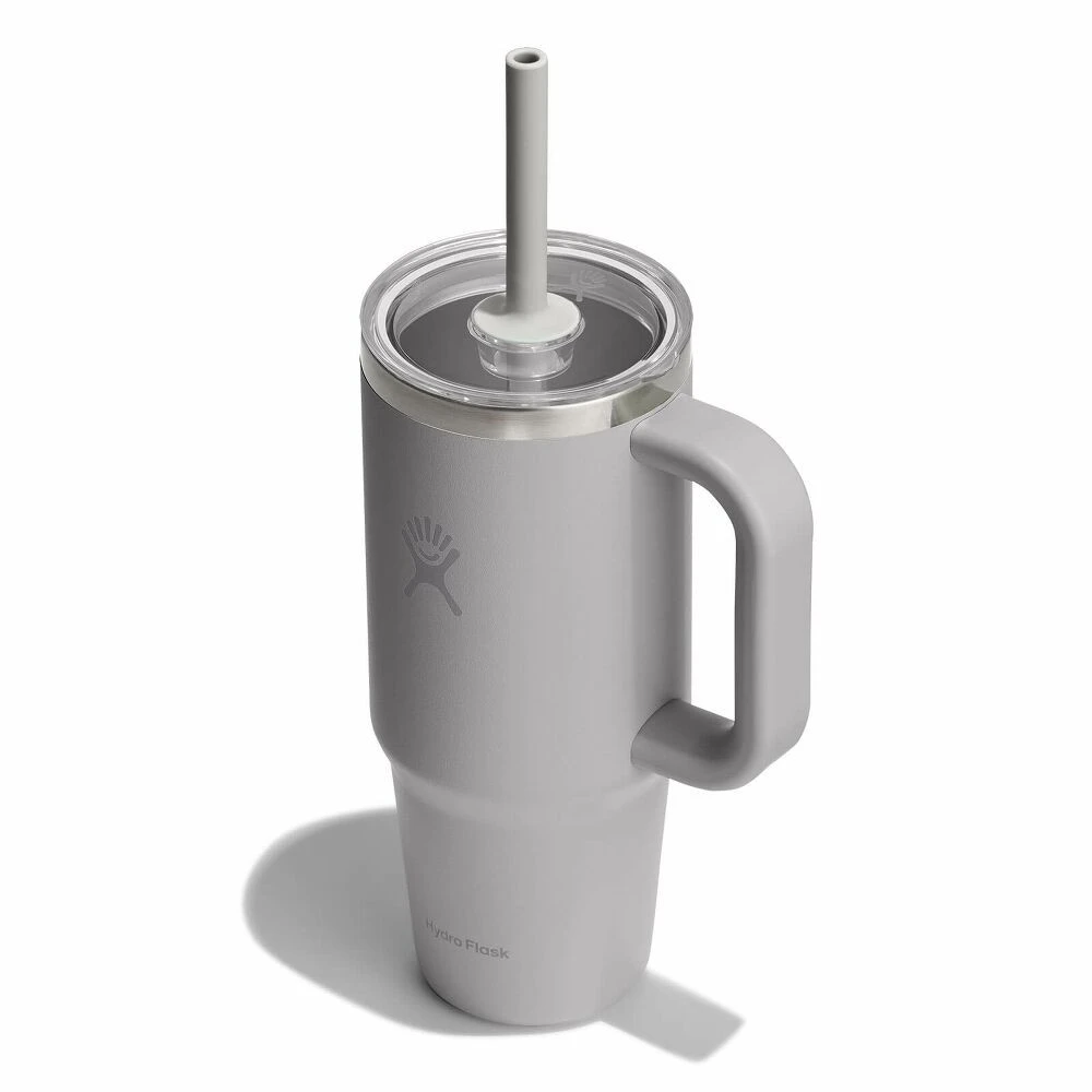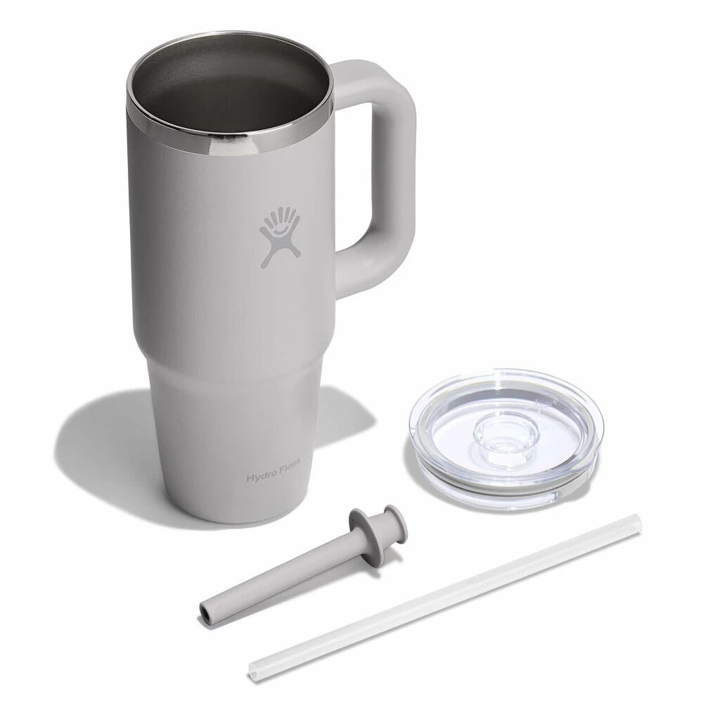 Kubek termiczny Hydro Flask All around Travel Tumbler ma pojemność 709 ml, a dzięki zwężonej dolnej części pasuje do większości uchwytów na napoje, zarówno w samochodzie, jak i np. w wózku dziecięcym. Bardzo duży uchwyt jest wygodny w trzymaniu i niezwykle wytrzymały.