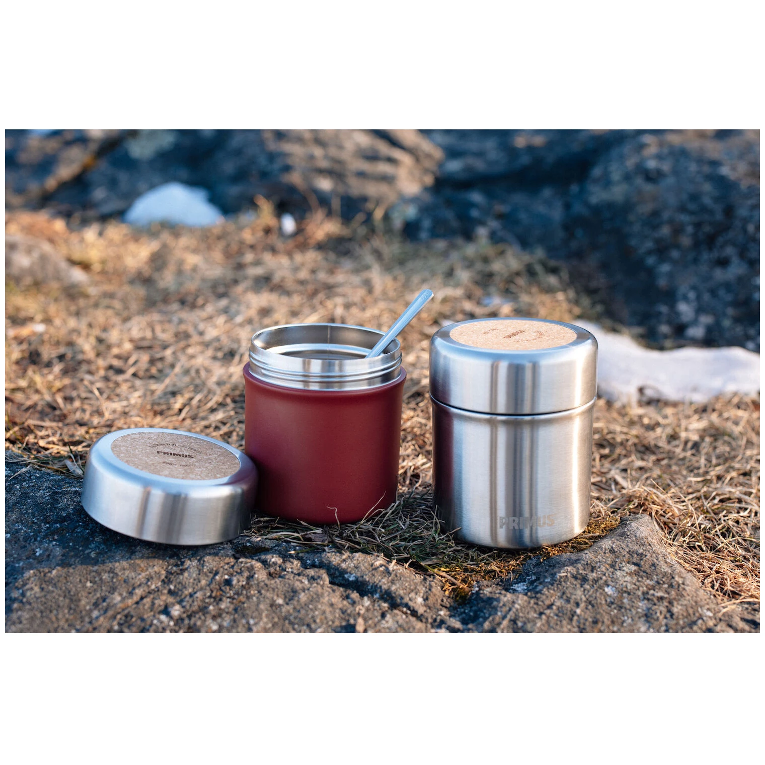 Termos próżniowy Preppen firmy Primus sprawia, że każda przerwa na posiłek staje się dziecinnie prosta. Napełnij go zupą, pikantnym makaronem lub odrobiną gazpacho i posiłek (ciepły lub zimny) jest gotowy do podania. Idealny dla dodatkowej energii podczas rodzinnych przygód lub przerw na lunch w biurze. Stworzone z myślą o codziennych potrzebach, te izolowane próżniowo pojemniki o podwójnych ściankach są wykonane ze stali nierdzewnej 18/8 o jakości spożywczej. Ten termos jest wyjątkowo wytrzymały, utrzymuje ciepło lub zimno żywności i nie wchłania ani nie oddaje żadnych smaków. Przykręcana pokrywa ze stali nierdzewnej utrzymuje żywność na miejscu. Dzięki dużemu otworowi pojemnik próżniowy Preppen jest łatwy do napełniania i czyszczenia. Zaprojektowany jako codzienne rozwiązanie do pracy, na uczelnię lub do zabawy.