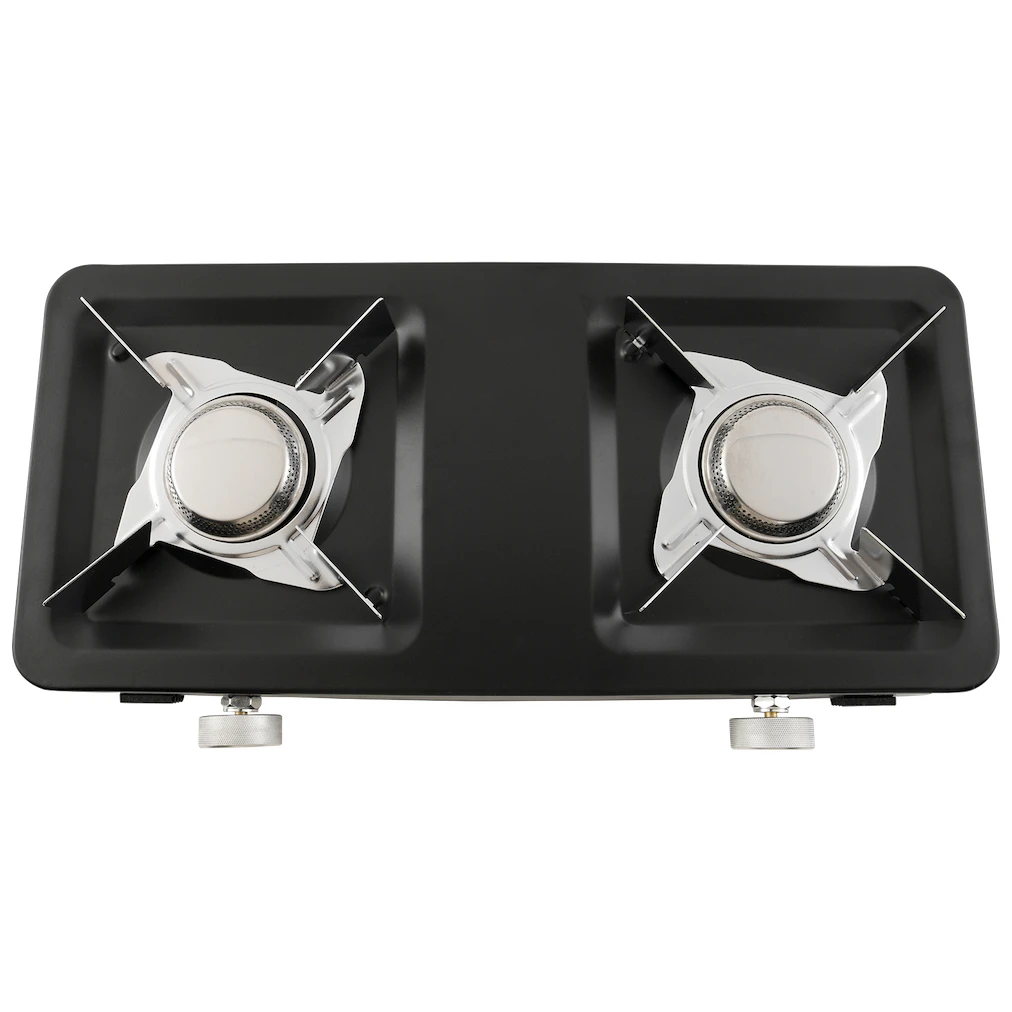 Kuchenka dysponuje mocą do 2 x 3000 W oraz obrotowym, cynkowym pokrętłem sterującym dla jego płynnej regulacji. Dopływ gazu zapewnia wąż PVC z automatycznym wyłączaniem. Kuchenka jest kompatybilna z samouszczelniającymi kartuszami gazowymi z gwintem EN417.