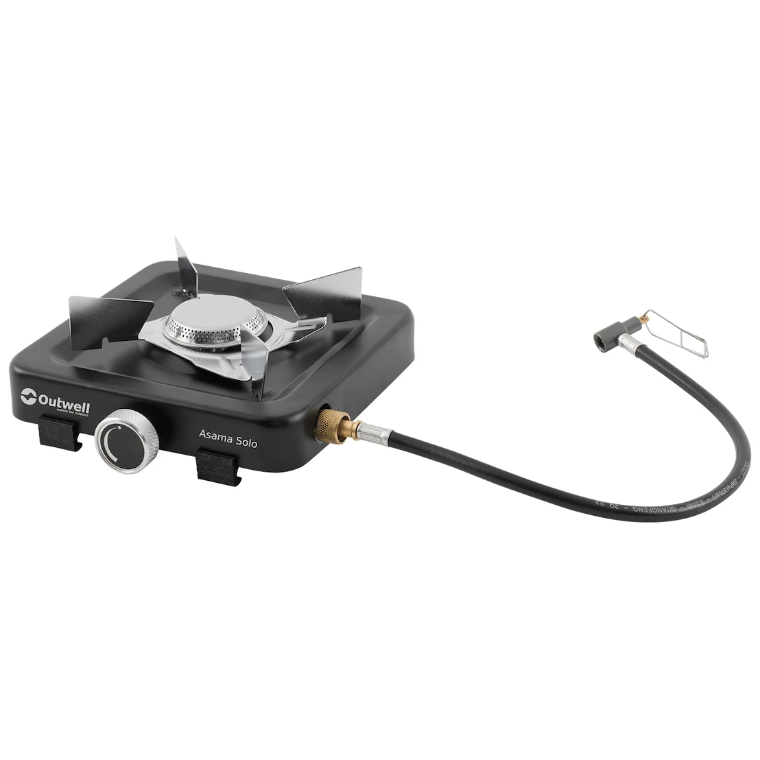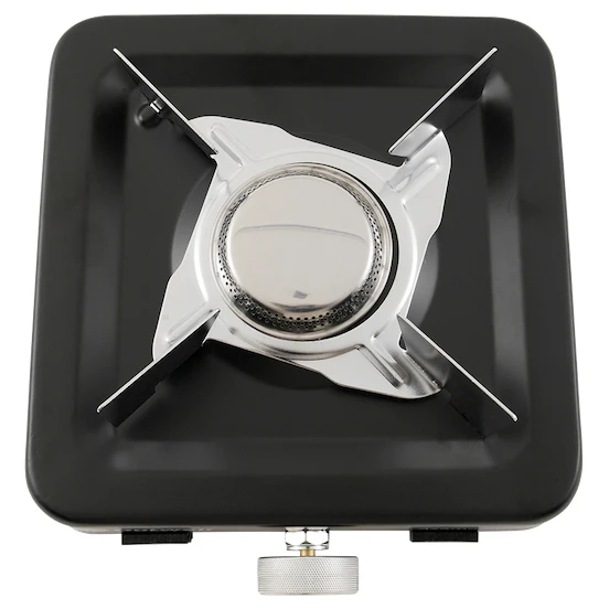 Palnik ma moc do 3000 W i obrotowe pokrętło regulacyjne do jego płynnej regulacji. Dopływ gazu zapewnia wąż PVC z automatycznym wyłączaniem. Kuchenka jest kompatybilna z samouszczelniającymi kartuszami gazowymi z gwintem EN417.