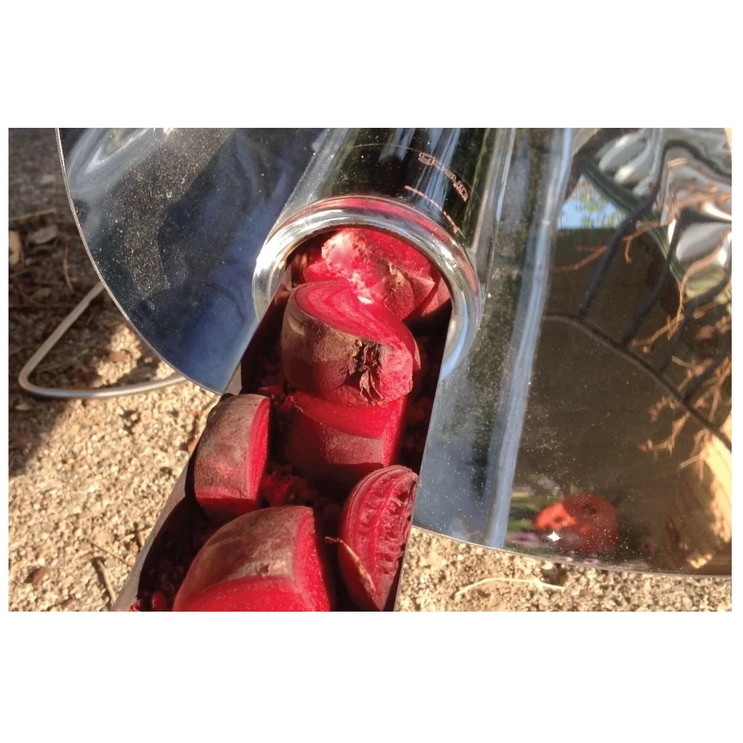 Rura próżniowa zapewnia niesamowitą izolację, dzięki czemu można gotować na słońcu na wietrze, mrozie lub w chmurach. Ponadto utrzymuje ciepło i soczystość potraw przez wiele godzin. Dzięki zintegrowanemu obiegowi grzewczemu zainspirowanemu przez NASA, możesz teraz gotować w temperaturze 177°C przez dodatkowe 140 minut, nawet gdy nie świeci słońce - w domu, w samochodzie, w miejscu pracy lub w nocy.