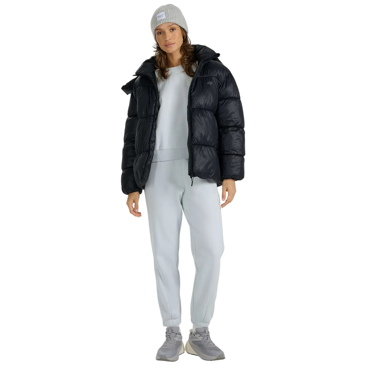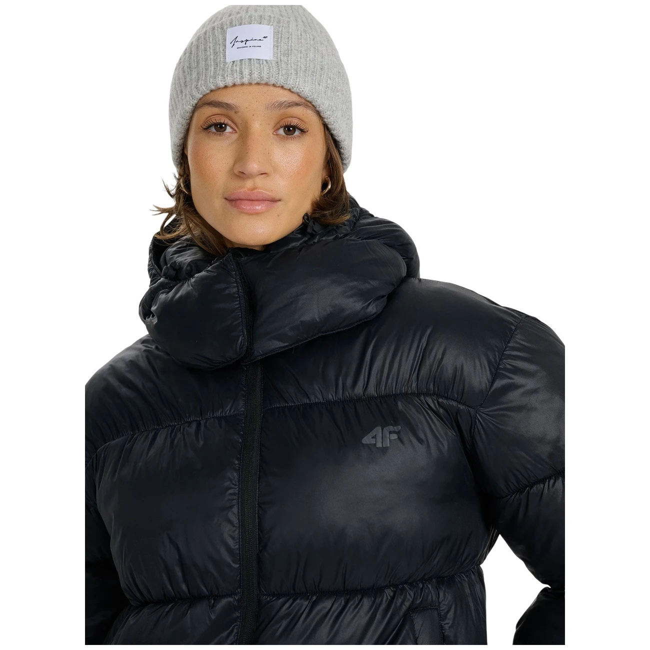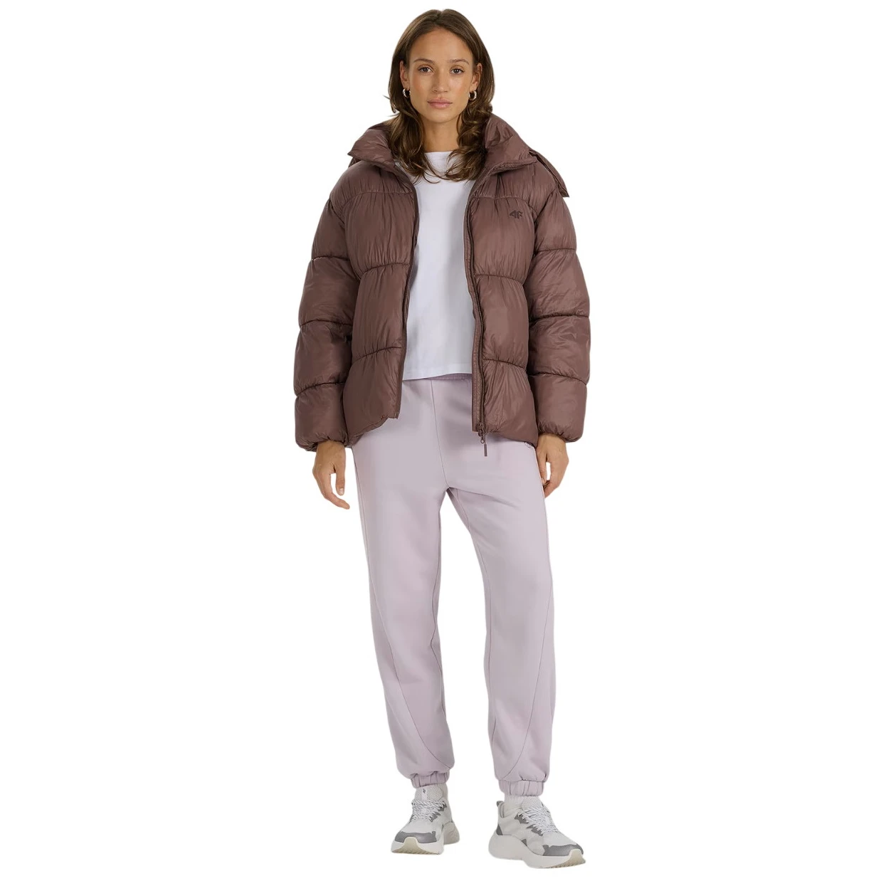 Kurtka damska Down Jacket F585 marki 4F to idealny wybór na zimę, ponieważ łączy w sobie nowoczesny krój oversize, niezawodną izolację termiczną i funkcjonalne detale zapewniające codzienny komfort. Dzięki syntetycznemu wypełnieniu puchowemu zapewnia ciepło nawet w wilgotnym otoczeniu, a jednocześnie jest łatwa w utrzymaniu. Hydrofobowa impregnacja DWR ogranicza nasiąkliwość materiału, dzięki czemu lekki deszcz ani wilgoć nie stanowią problemu.