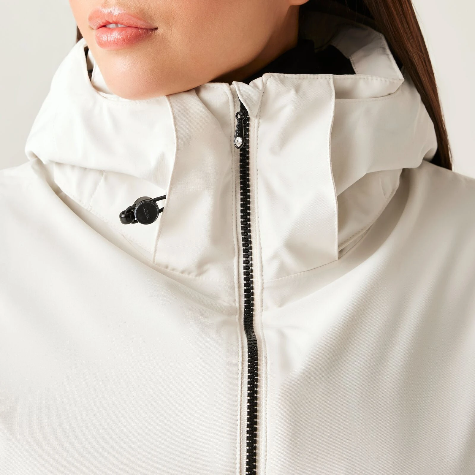 Issy Jacket łączy nowoczesny design z luksusowymi detalami – zamki błyskawiczne są ozdobione kryształami Swarovski, co nadaje kurtce wyjątkowy wygląd na stoku i w mieście.
