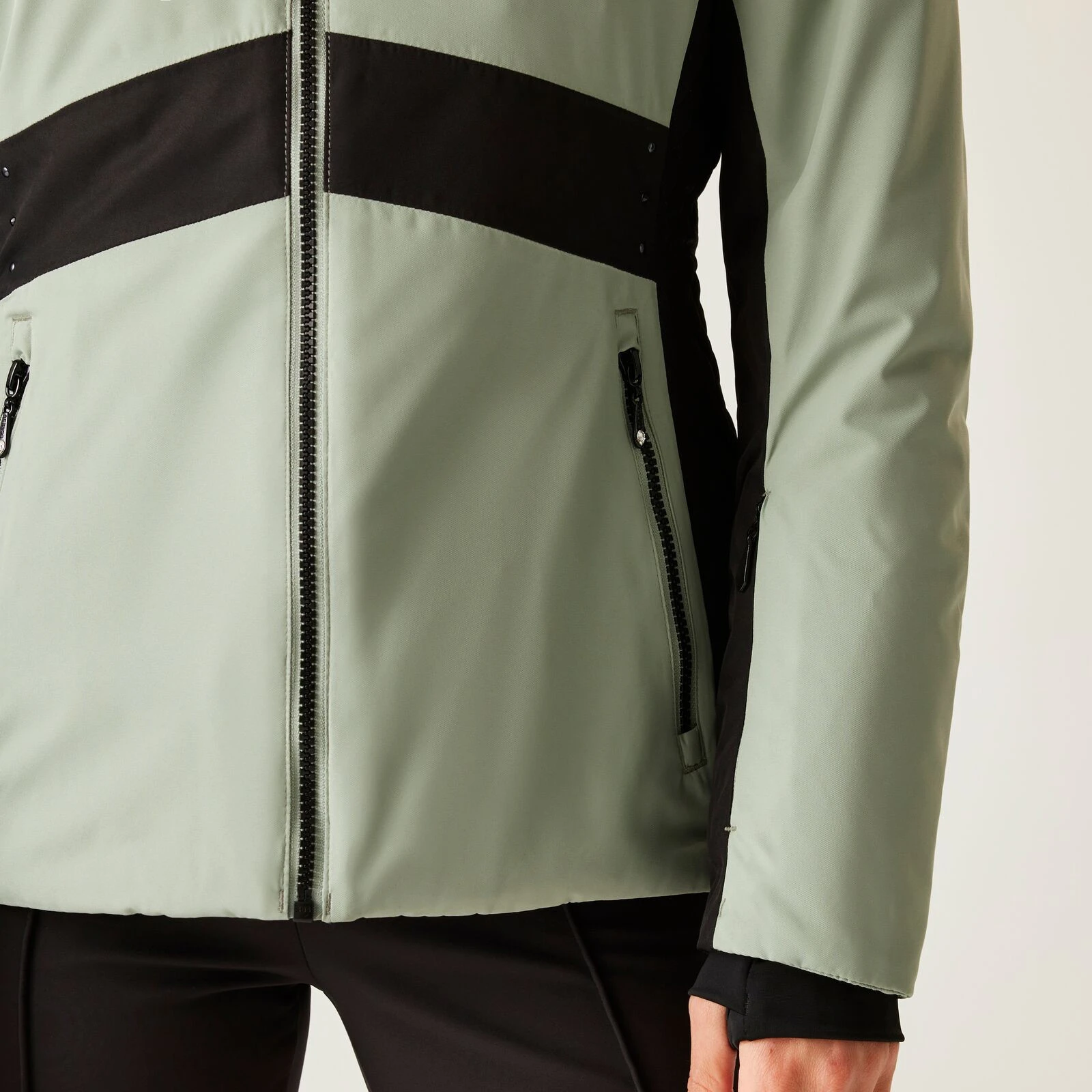 Kurtka posiada kieszeń na skipass, stały pas śnieżny i odpinany kaptur z regulowanymi paskami. Wewnętrzne kieszenie na zamek błyskawiczny i siateczkowa kieszeń ze ściereczką do okularów dopełniają praktyczną funkcjonalność.