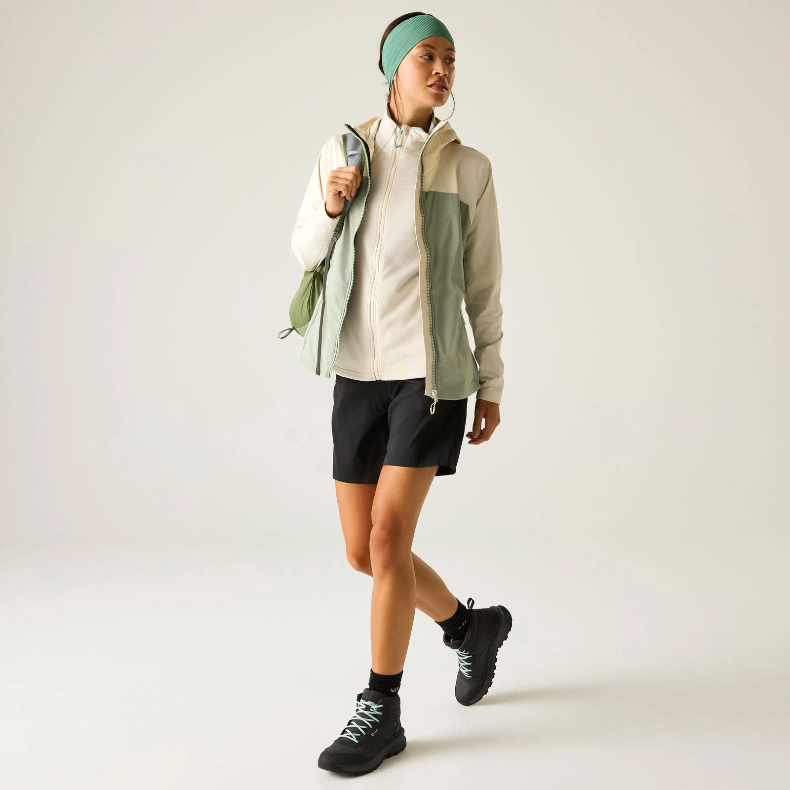Praktyczne detale, takie jak kieszenie zapinane na zamek, kaptur ze ściągaczem i regulowany dół, zwiększają funkcjonalność podczas noszenia. Kurtka jest dodatkowo wyposażona w ochronę UV UPF 50+, dzięki czemu niezawodnie ochroni Cię podczas przebywania na słońcu. Materiał stanowi połączenie poliestru i poliestru z recyklingu dla zrównoważonego stosunku wytrzymałości do komfortu.