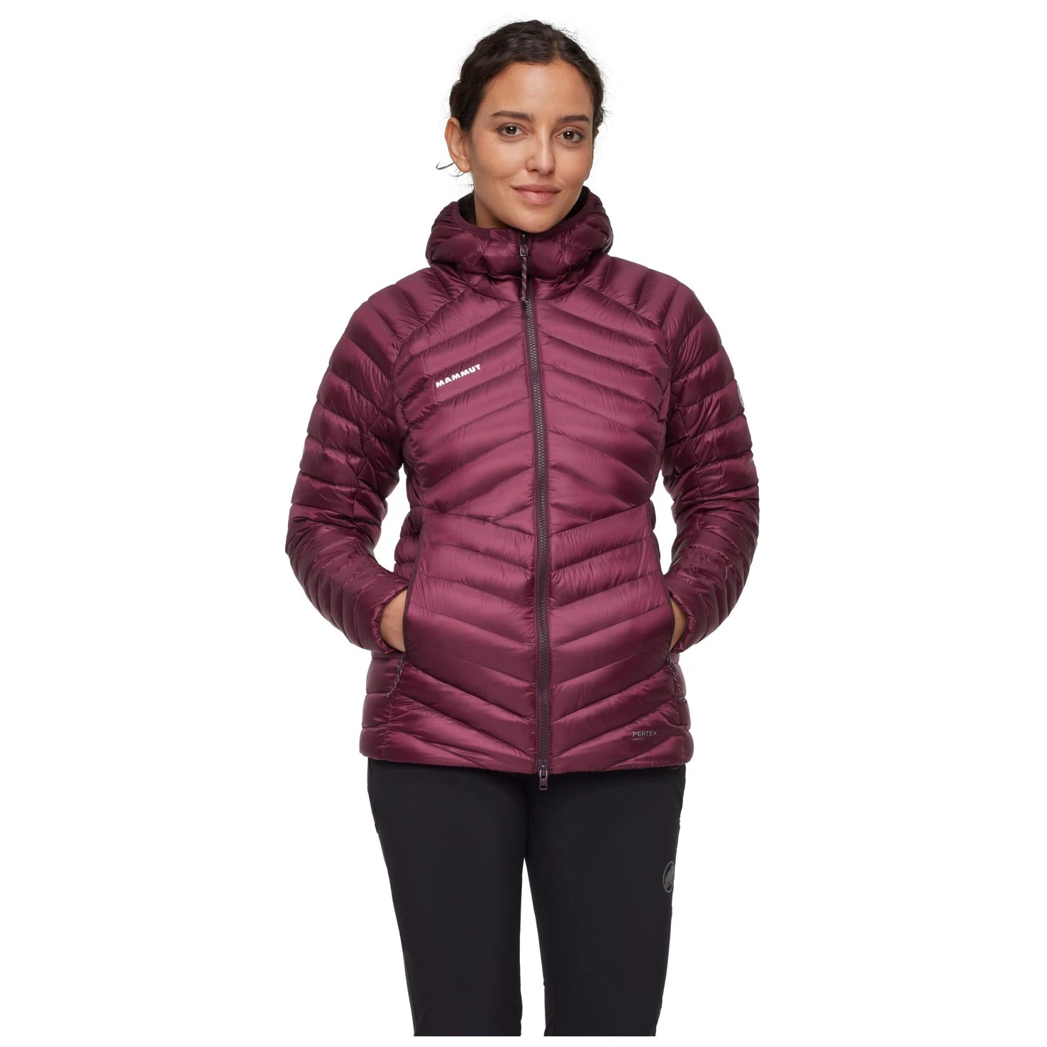 Damska kurtka puchowa Broad Peak IN Hooded Jacket Women marki Mammut to świetny element wyposażenia, jeśli planujesz aktywności w górach. Jest bardzo lekka i docenisz możliwość złożenia kurtki do niewielkich rozmiarów za pomocą jednej z bocznych kieszeni. Wewnętrzną izolację zapewnia hydrofobowy puch gęsi, który niezawodnie izoluje nawet w mokrych warunkach. Materiał zewnętrzny składa się z przetworzonego Pertex® Quantum, który jest nie tylko odporny na ścieranie, ale także wodoodporny dzięki obróbce DWR. Kominiarka z elastycznym obszyciem idealnie dopasowuje się i nie ogranicza ruchów.