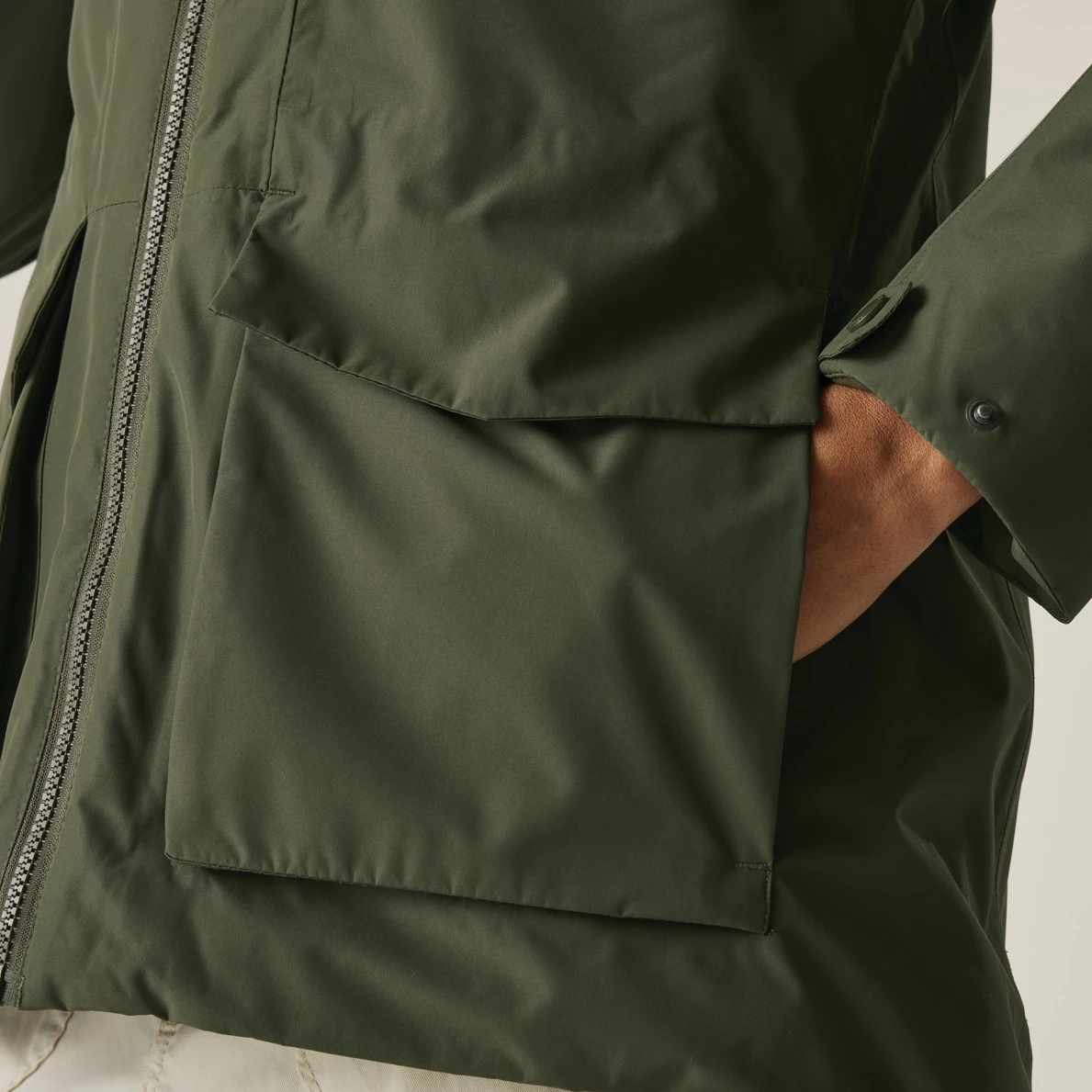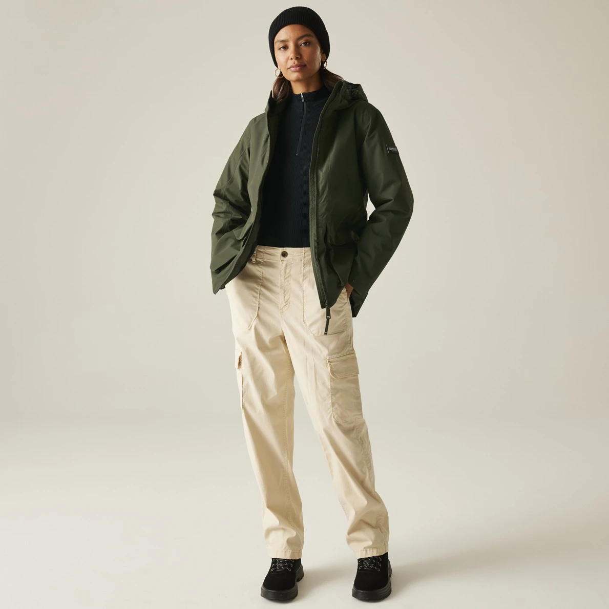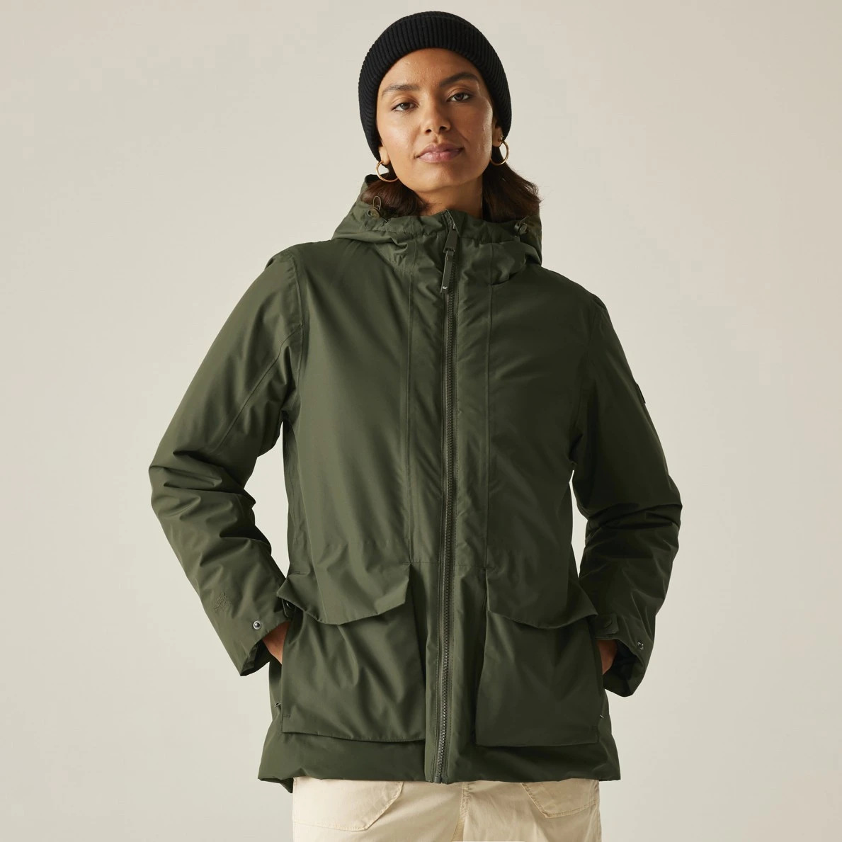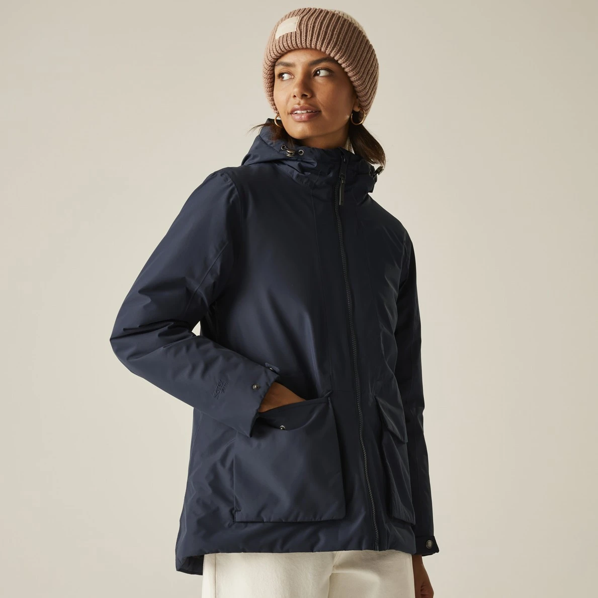 Kurtka damska Melane firmy Regatta oferuje idealne połączenie funkcjonalności, komfortu i stylu. Wykonana z wodoodpornej i oddychającej tkaniny Isotex 15000, zapewnia niezawodną ochronę przed deszczem i wiatrem. Recyklingowana izolacja Thermoguard przyjemnie Cię ogrzeje, a klejone szwy zapewniają całkowitą nieprzemakalność.