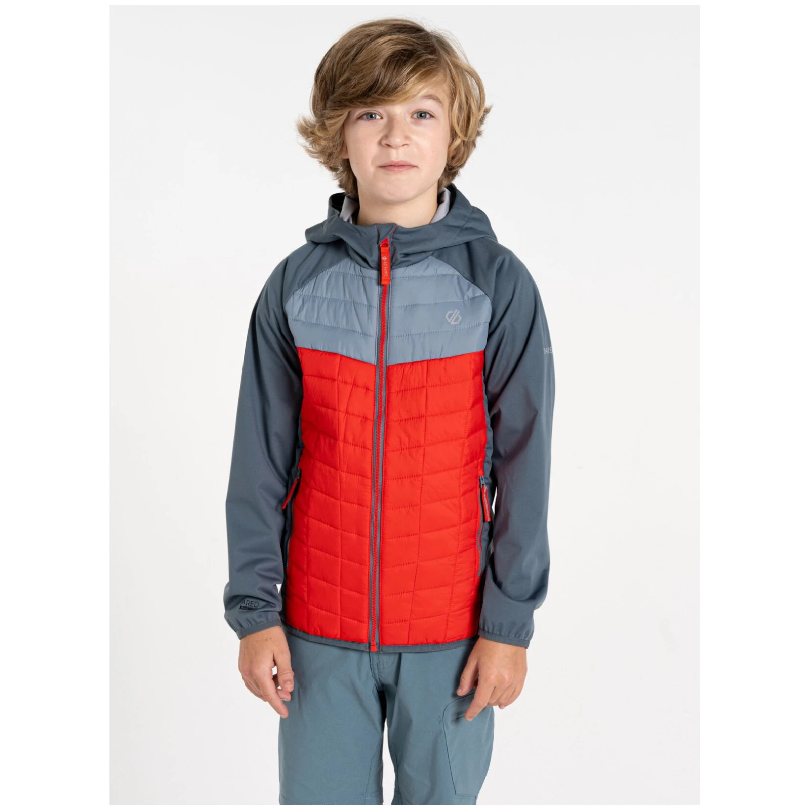 Dziecięca kurtka hybrydowa Dare 2b Explore II Hybrid jest wykonana z technicznego materiału iLUS Windproof i tkaniny pochodzącej z recyklingu Ared 15/15. Dzięki temu stanowi doskonałą ochronę przed wiatrem i wodą, a jednocześnie pozostaje oddychająca. Materiał jest dodatkowo elastyczny, dzięki czemu dzieci nie są ograniczone w naturalnych ruchach. Pośrodku przednich i tylnych paneli znajduje się wypełnienie Iloft Air, które niezawodnie ogrzewa i jest pokryte wodoodporną tkaniną ripstop.