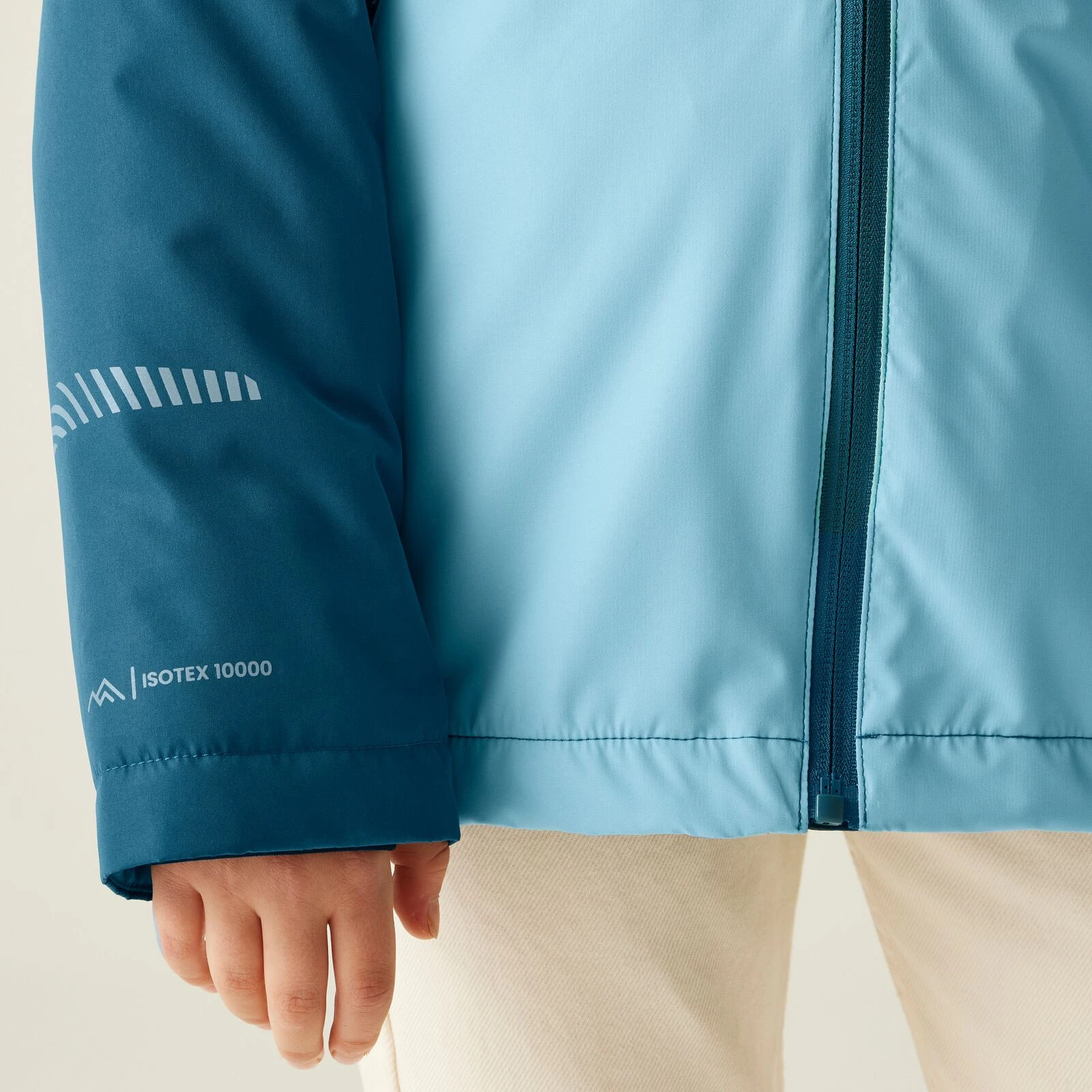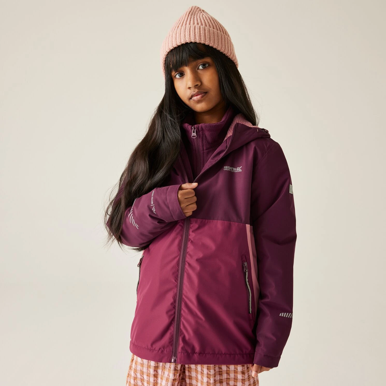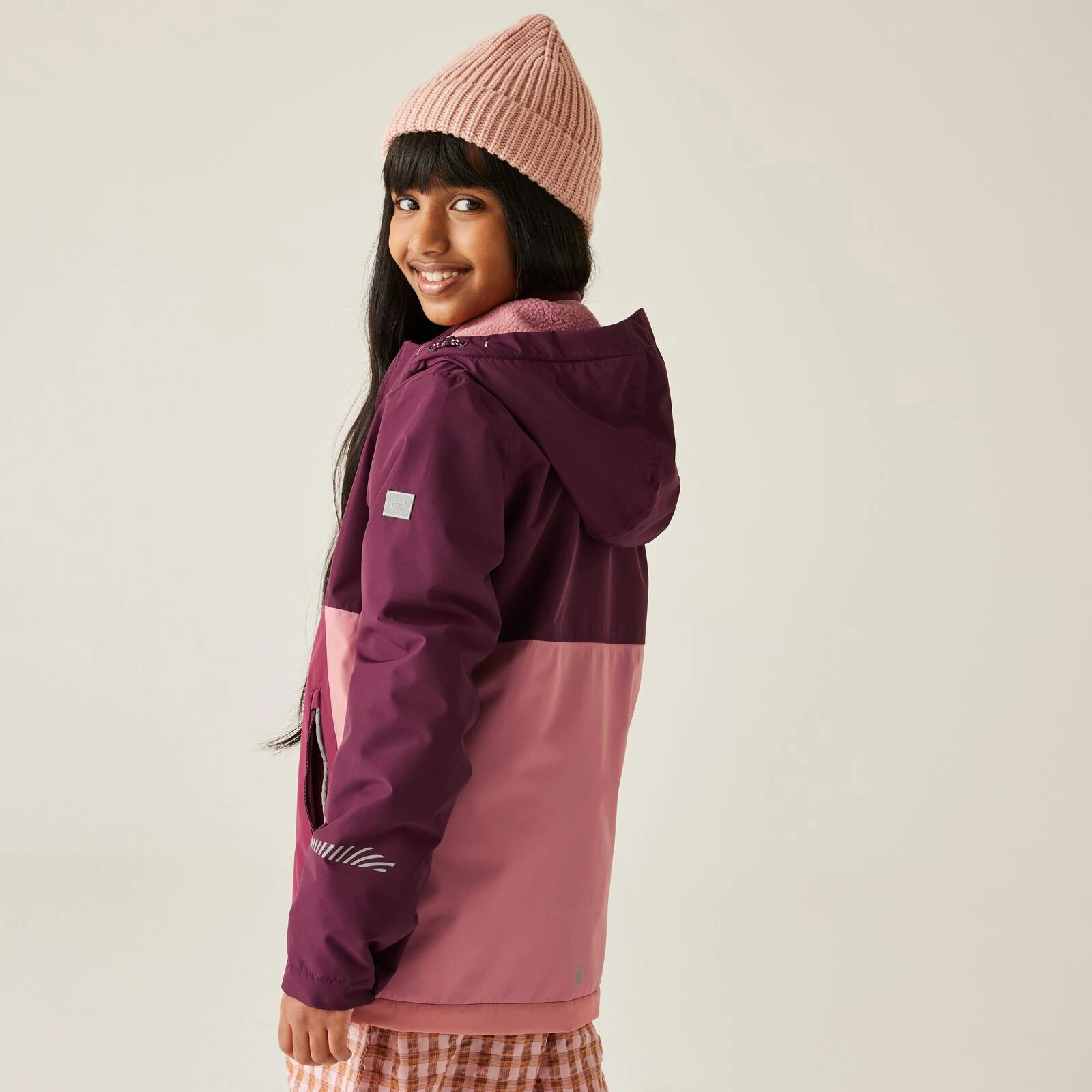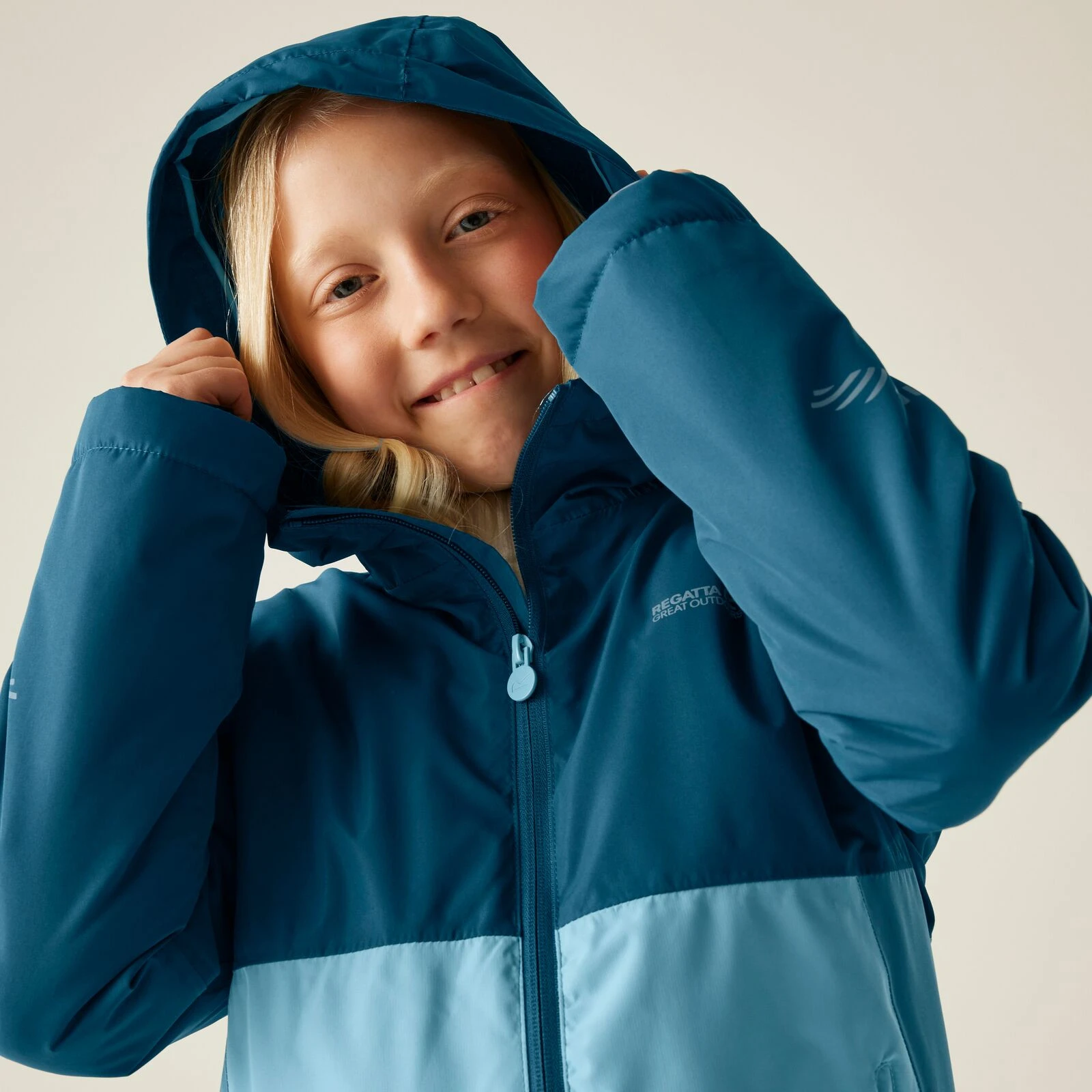 Kurtka dziecięca Hillain Warm Lined marki Regatta ma podszewkę z polaru borg i elementy odblaskowe. Stały kaptur i kieszenie na zamek sprawiają, że idealnie nadaje się na dni szkolne lub zabawy na świeżym powietrzu przy nieprzewidywalnej pogodzie.