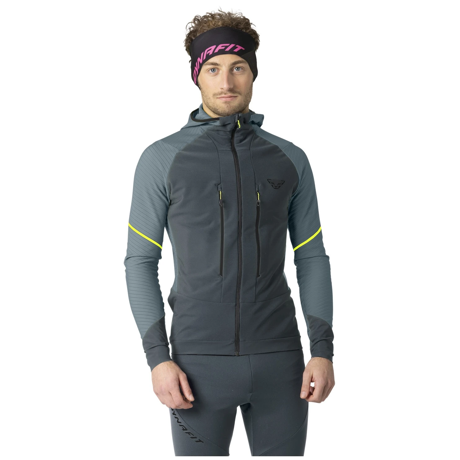 Kurtka męska Mezzalama Race Jkt M marki Dynafit jest wykonana z dwóch technicznych, elastycznych materiałów, które gwarantują pełną swobodę ruchów oraz doskonałą równowagę między oddychalnością a ciepłem, abyś mógł dać z siebie wszystko podczas treningu. Kanały powietrzne na plecach i rękawach zapewniają dodatkową wentylację podczas intensywnych ćwiczeń. Duże przednie kieszenie umożliwiają szybki dostęp do Twoich rzeczy, a przylegający kaptur niezawodnie chroni przed wiatrem.