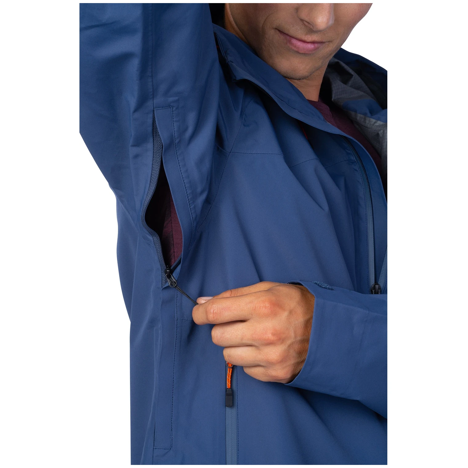 Zamki wentylacyjne pod pachami zapewniają skuteczną wentylację, natomiast w pełni podklejone szwy i wodoodporne zamki gwarantują całkowitą ochronę przed wilgocią. Kurtka ma regulowany kaptur, który można łatwo regulować w dwóch kierunkach za pomocą gumek, oraz dół kurtki z regulacją szerokości dla idealnego dopasowania. Anatomicznie profilowane rękawy, zakończone regulowaną patką na rzep, umożliwiają swobodny ruch bez ograniczeń.