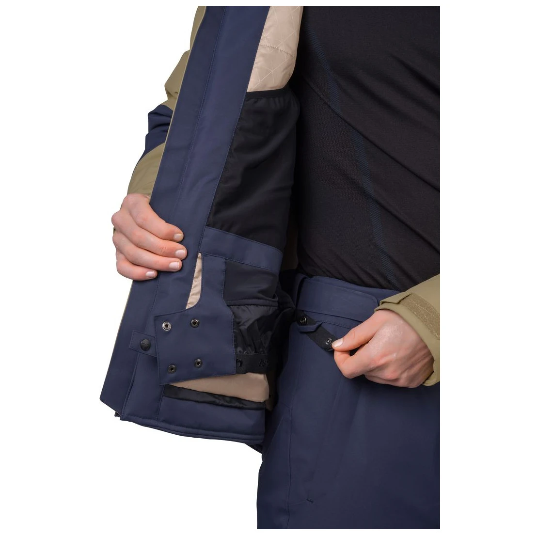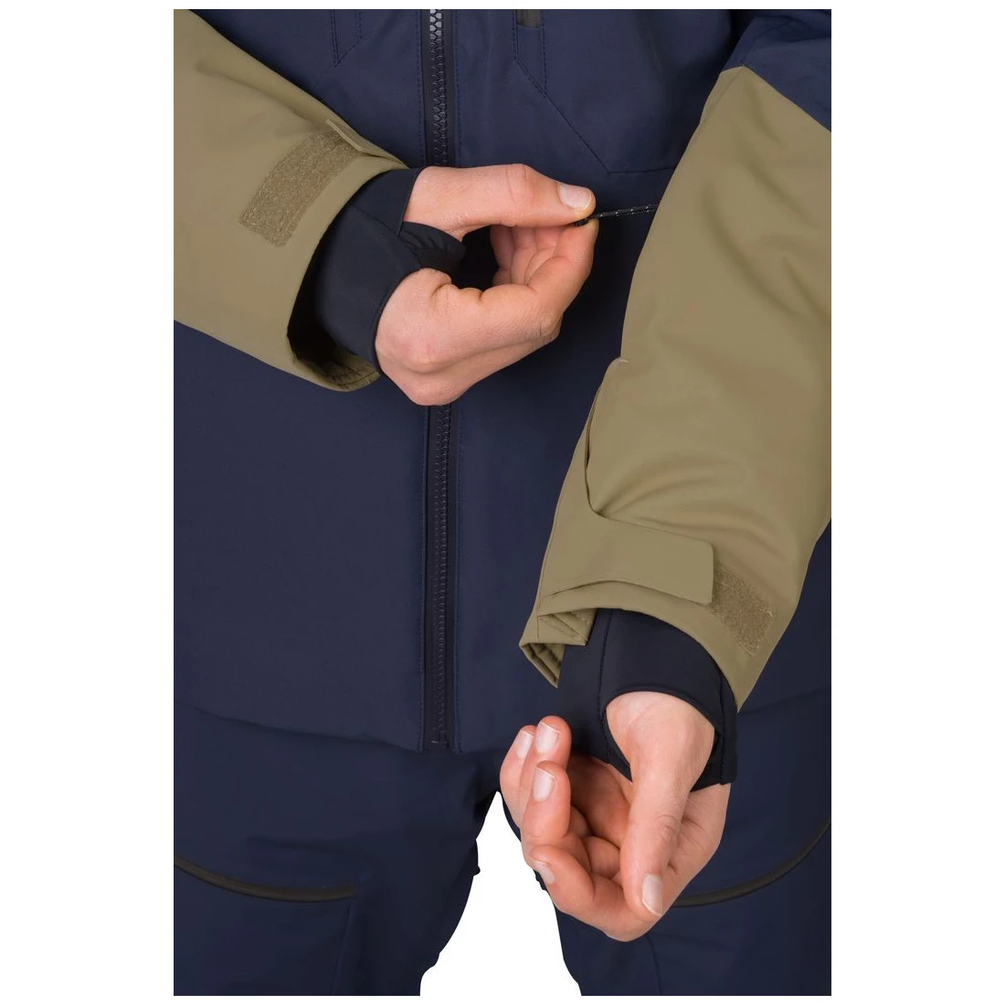 Od wodoodpornych zamków YKK na środkowym suwaku i kieszeniach na piersi, a także wentylację pod pachami, system kieszeni wewnętrznych i { 3} kołnierz przeciwśniegowy 3} w talii. Anatomicznie ukształtowane rękawy z zapinaną na zamek kieszenią na karnet narciarski są wykończone zapięciem na rzep. Wewnętrzne elastyczne mankiety rękawów z otworem na kciuk zmniejszają ucieczkę ciepła, zapewniając jednocześnie, że śnieg pozostanie na swoim miejscu. System łączenia kurtki i spodni umożliwia łatwe przymocowanie spodni narciarskich.
