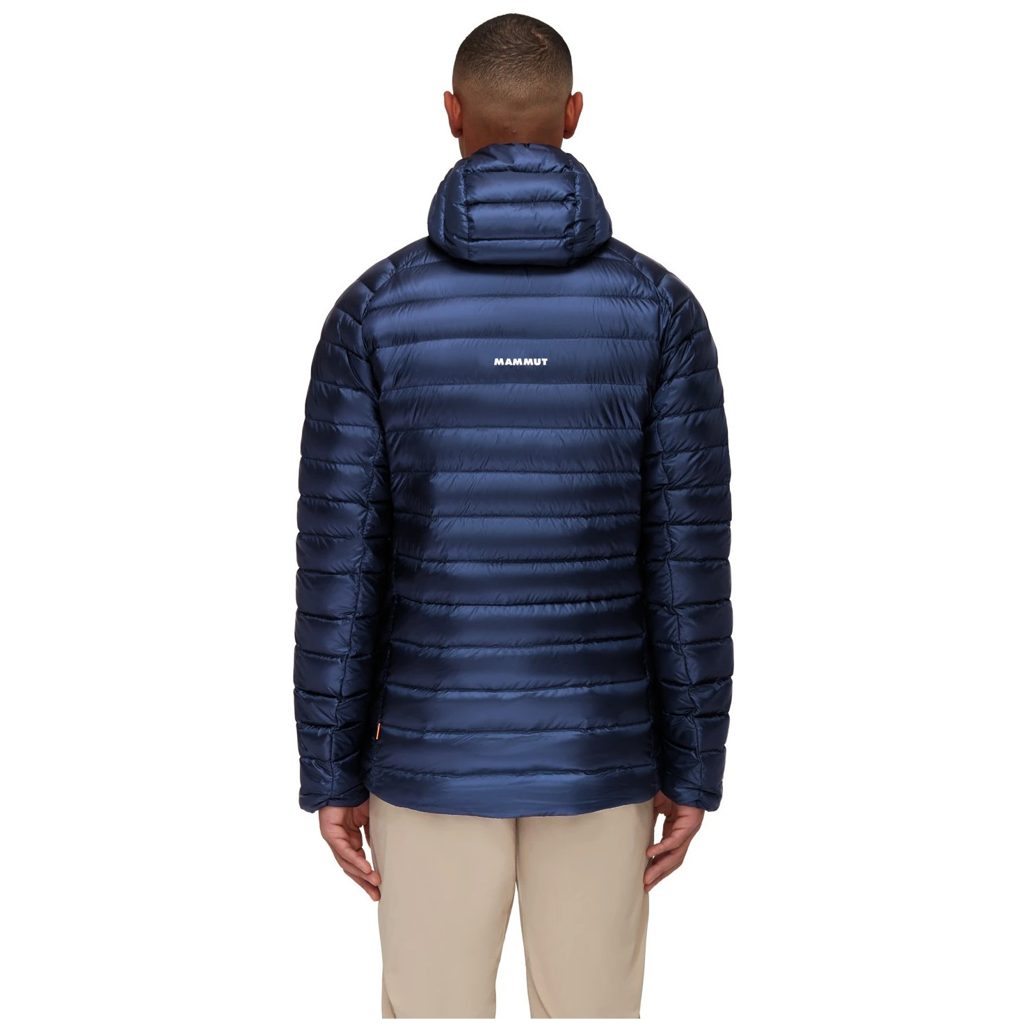 Męska kurtka puchowa Broad Peak IN Hooded Jacket Men marki Mammut to świetny element wyposażenia, jeśli planujesz aktywności w górach. Jest bardzo lekka i docenisz możliwość złożenia kurtki do niewielkich rozmiarów za pomocą jednej z bocznych kieszeni. Wewnętrzną izolację zapewnia hydrofobowy puch gęsi, który niezawodnie izoluje nawet w mokrych warunkach. Materiał zewnętrzny składa się z przetworzonego Pertex® Quantum, który jest nie tylko odporny na ścieranie, ale także wodoodporny dzięki obróbce DWR. Kominiarka z elastycznym obszyciem idealnie dopasowuje się i nie ogranicza ruchów.