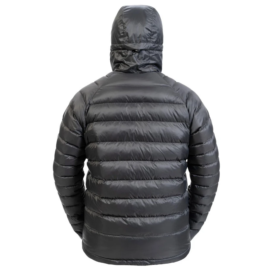 Materiał zewnętrzny wykonany jest z najwyższej jakości tkaniny Toray™ Airtastic™ z wodoodpornym wykończeniem DWR, doskonałą oddychalnością i świetnym stosunkiem niskiej wagi do wytrzymałości. Główny komfort termiczny zapewnia 98 g pochodzącego z recyklingu europejskiego pierza kaczkego o sprężystości 650 cuin (rozm. M), certyfikowanego przez GRS.