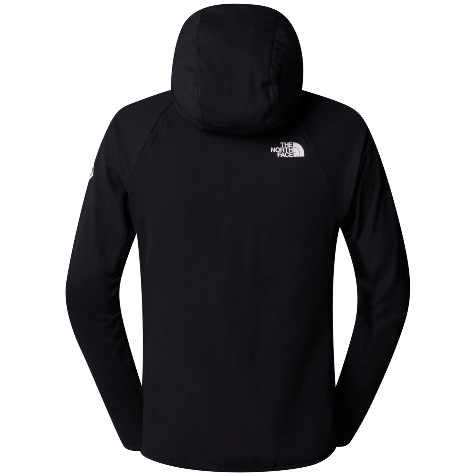 Bluza posiada bezszwowe ramiona w celu zmniejszenia objętości i zwiększenia komfortu, rękawy typu raglan oraz elastyczne kliny pod pachami, które umożliwiają swobodę ruchów.Praktyczne detale obejmują kaptur zelastycznym wykończeniem, zapinaną na zamek kieszeń na piersi z siatkową przegrodą wewnętrzną, zintegrowane pętelki na kciuki w elastycznych mankietach oraz płaskie szwy w kluczowych miejscach dla komfortu bezpośrednio przy skórze.