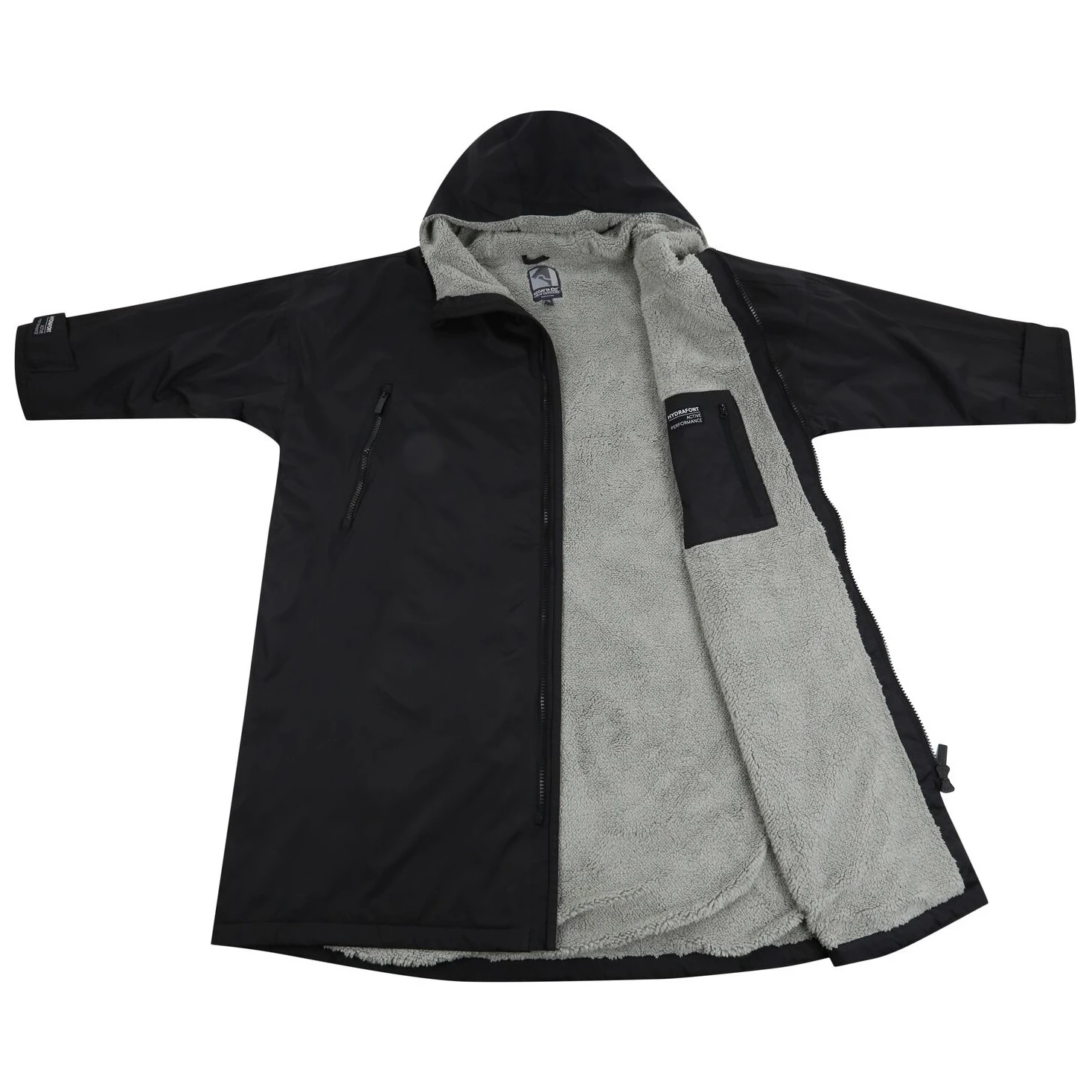 Szlafrok jest unisex i posiada regulowane mankiety, dwie dolne kieszenie na zamek błyskawiczny oraz wewnętrzną kieszeń bezpieczeństwa na zamek błyskawiczny – idealne na klucze lub telefon. Nie brakuje również wzmocnionego kaptura, który ochroni Cię przed wiatrem. Praktycznym bonusem jest również możliwość wykonania nadruku, dzięki czemu możesz stworzyć własny styl.