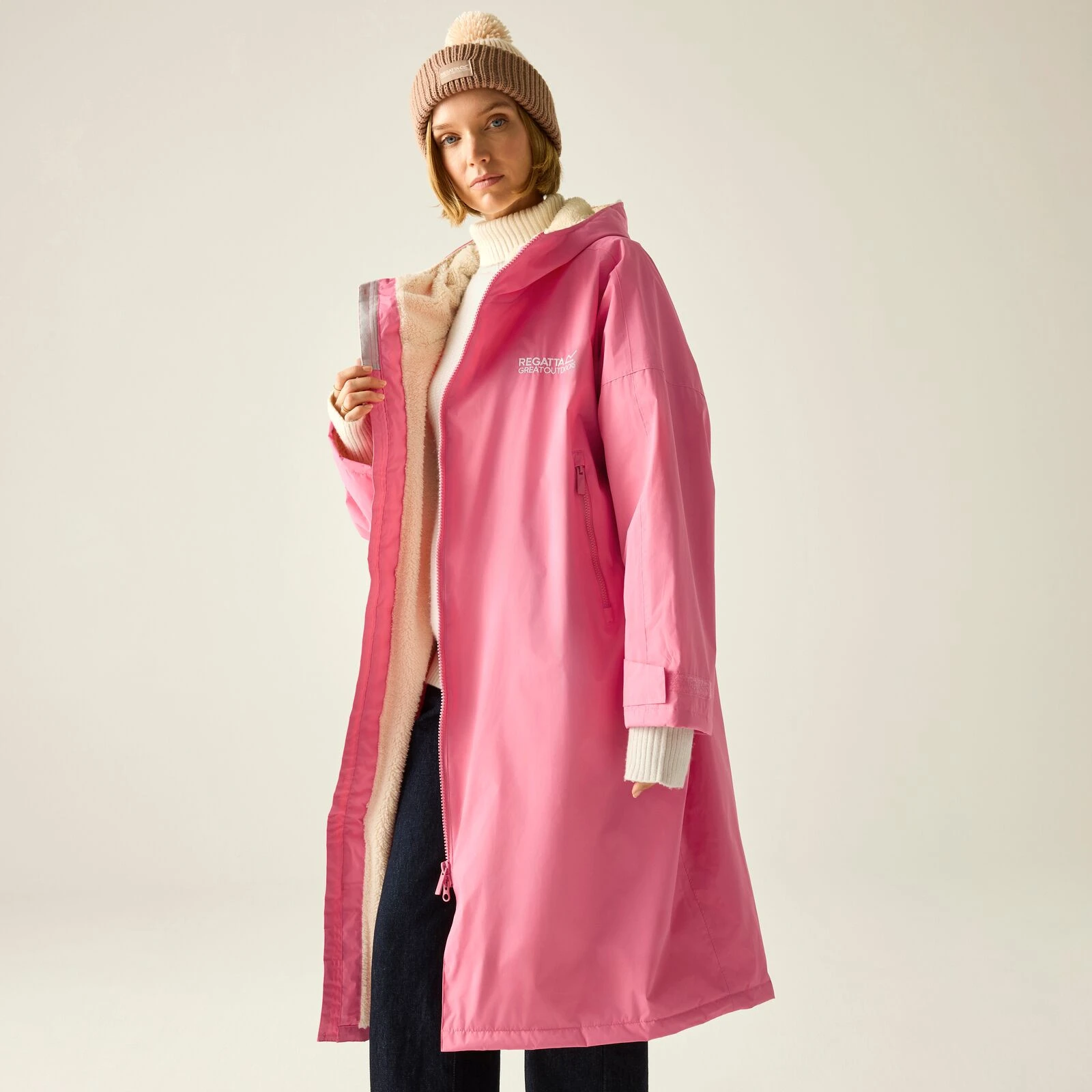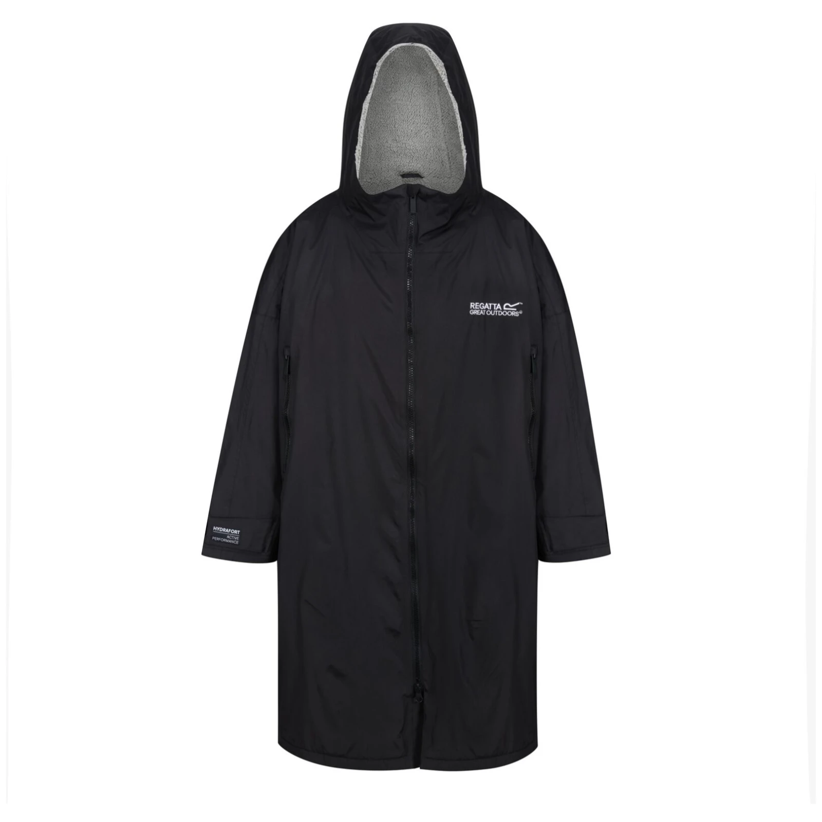 Regatta Adult W Proof Robe to wodoodporny, wiatroodporny i wyjątkowo przestronny szlafrok z polaru, w którym możesz się wygodnie, sucho i ciepło przebrać w dowolnym miejscu na zewnątrz.
