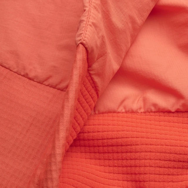 Boczne panele z recyklingowanego polaru Thermo Grid i anatomicznie ukształtowany krój zapewniają maksymalną swobodę ruchów i komfort nawet podczas dynamicznych aktywności. Dzięki niskoprofilowemu kapturowi, płaskim szwom i minimalistycznemu designowi kurtka idealnie sprawdza się jako lekka warstwa izolacyjna lub samodzielna kurtka w łagodniejszych warunkach.