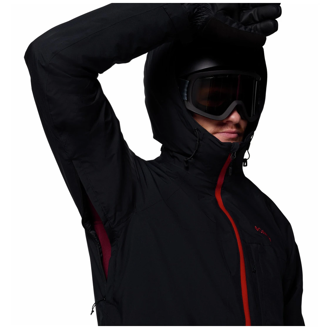 Izolacja Microtemp XF II (80 g) z udziałem poliestru z recyklingu zapewnia ciepło bez zbędnej wagi. Kurtka jest wyposażona w regulowany kaptur, odpinany pas śnieżny, otwory wentylacyjne pod pachami oraz liczne praktyczne kieszenie, w tym kieszeń na skipass, okulary i kosztowności. Wydłużona tylna część i regulowany dół chronią przed wnikaniem chłodu i śniegu.
