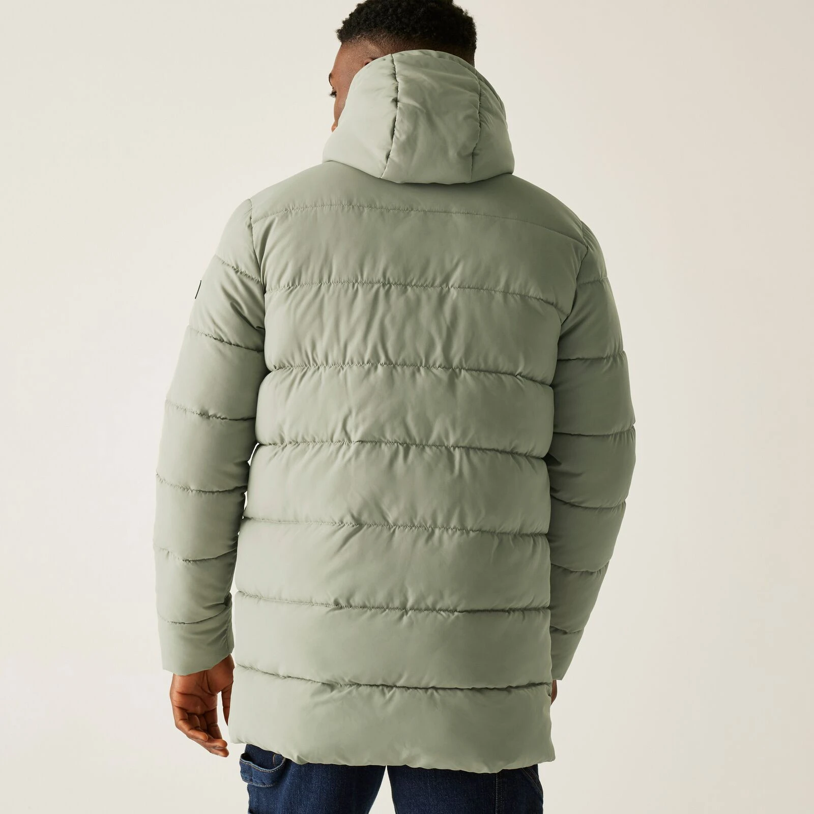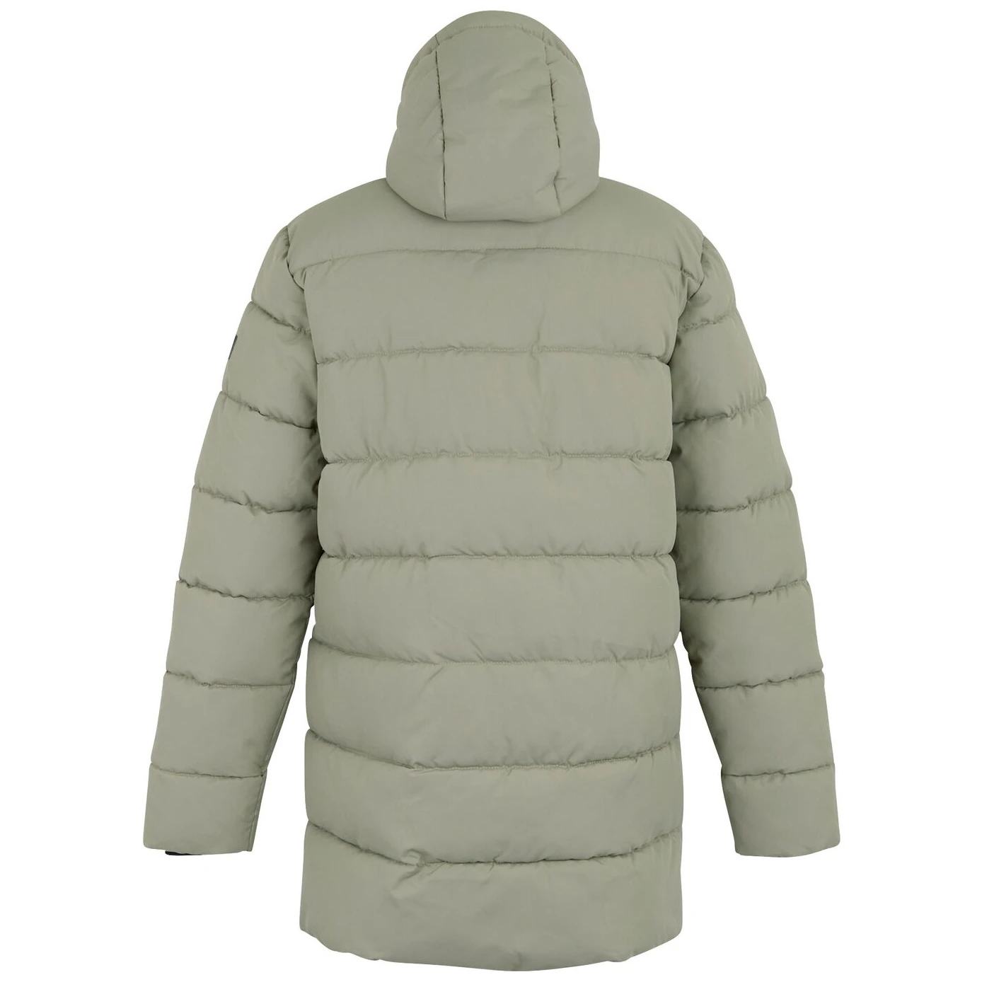 Wewnętrzna izolacja premium wykonana z syntetycznego puchu pochodzącego z recyklingu zapewnia wystarczającą ilość ciepła, a poliestrowa podszewka z tafty zapewnia wygodne dopasowanie. Praktyczny kaptur z regulacją, dwie dolne kieszenie zapinane na zamek i wewnętrzna kieszeń bezpieczeństwa zapinana na zamek zapewniają dużo miejsca do przechowywania. Wewnętrzne mankiety chronią przed wiatrem i deszczem.