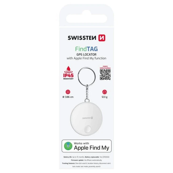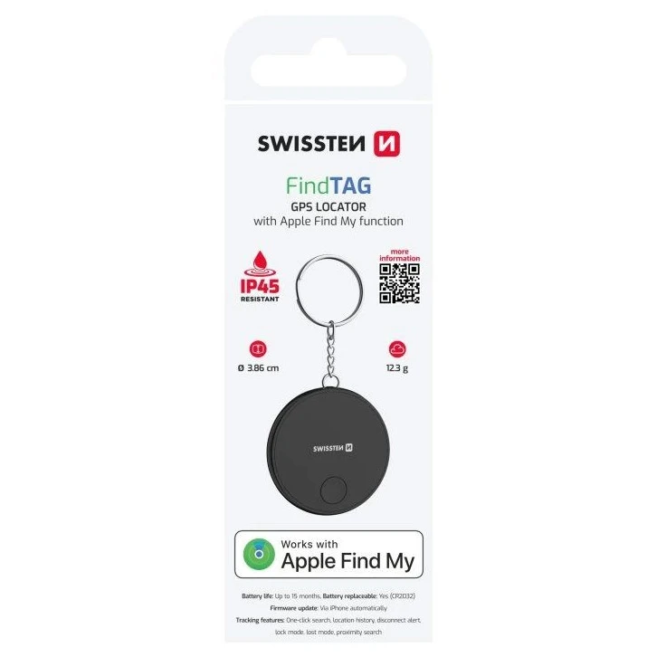 Swissten Find Tag to kompaktowy inteligentny lokalizator, który pomoże Ci szybko znaleźć zgubione klucze, portfel, torbę lub inne cenne przedmioty. Dzięki integracji z siecią Apple Find My działa bezpośrednio z iPhonem i iPadem, bez potrzeby instalowania dodatkowych aplikacji. Wbudowany brzęczyk i precyzyjna lokalizacja zapewnią, że swoje rzeczy zawsze łatwo znajdziesz, nawet w trudnych warunkach. Wytrzymała obudowa z tworzywa ABS o stopniu ochrony IP45 i długi czas pracy baterii do 15 miesięcy sprawiają, że Find Tag jest niezawodnym towarzyszem na co dzień.