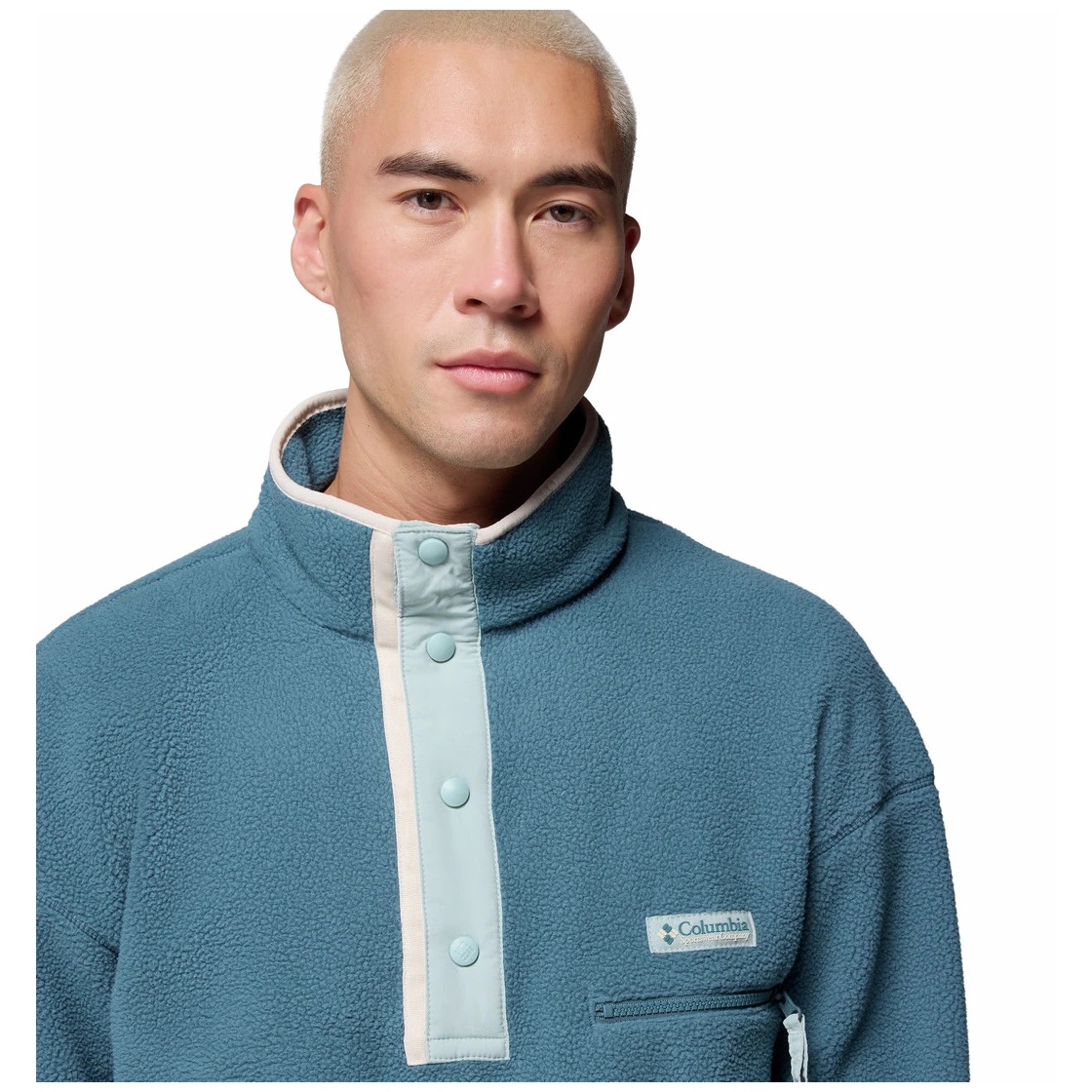 Męska bluza Columbia Polar Helvetia™ II Half Snap to stylowy i funkcjonalny element garderoby, zapewniający maksymalny komfort w chłodniejsze dni. Wykonana jest z miękkiego, w 100% poliestrowego polaru sherpa, o doskonałych właściwościach izolacyjnych i przyjemnego w dotyku. Zapięcie na zatrzask ułatwia zakładanie i pozwala regulować temperaturę w zależności od potrzeb.