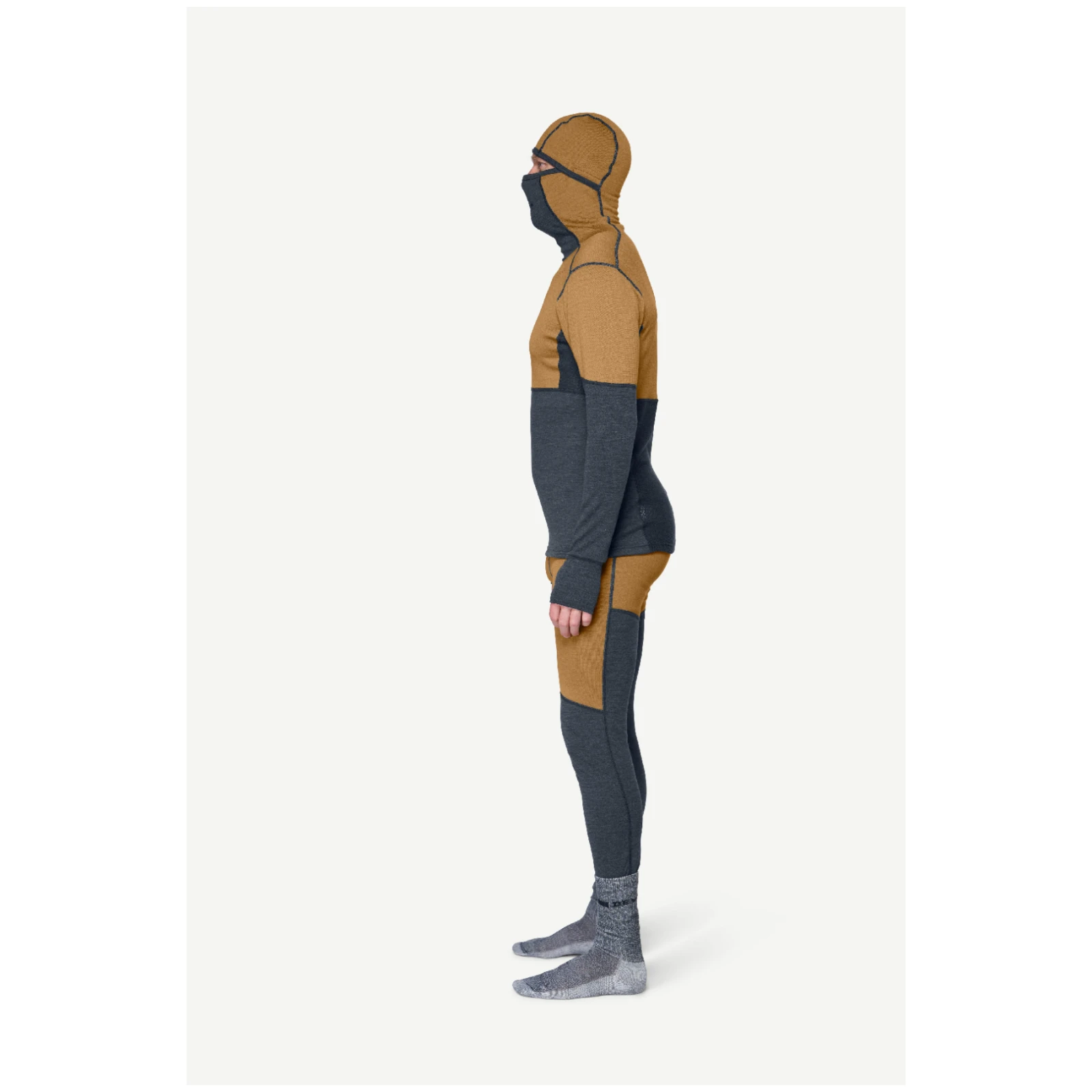 Siatkowa struktura Egga zatrzymuje ciepło w małych kieszeniach powietrznych, materiał Expedition izoluje i reguluje wilgotność, a panele Wool Mesh zapewniają wentylację podczas dużego obciążenia. Ergonomiczny krój z przedłużonym tyłem, płaskie szwy i dwuwarstwowe mankiety z otworami na kciuki zwiększają komfort noszenia. Przylegający kaptur mieści się pod kaskiem, a wysoki kołnierz z otworami wentylacyjnymi pomaga odprowadzać wilgoć z ust.
