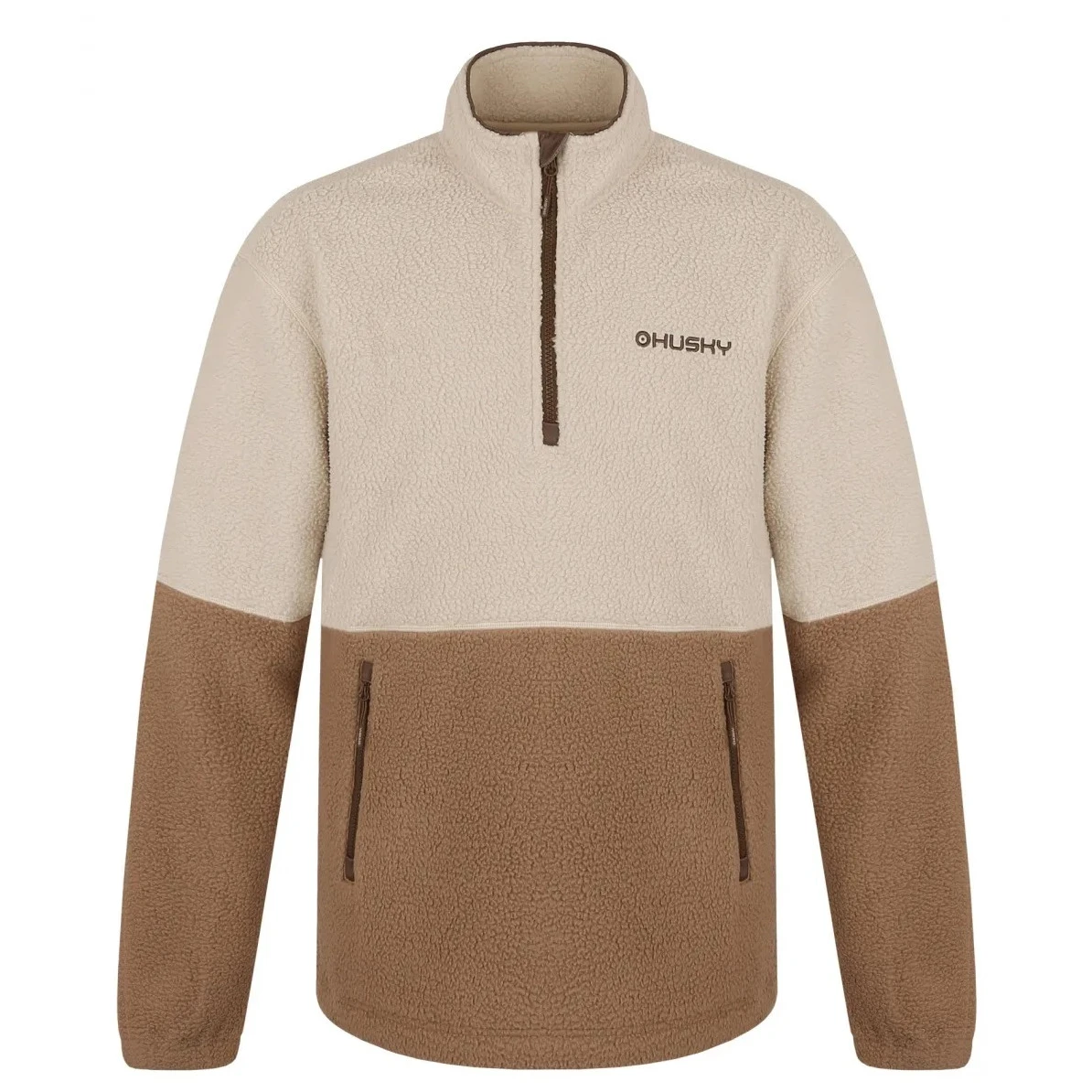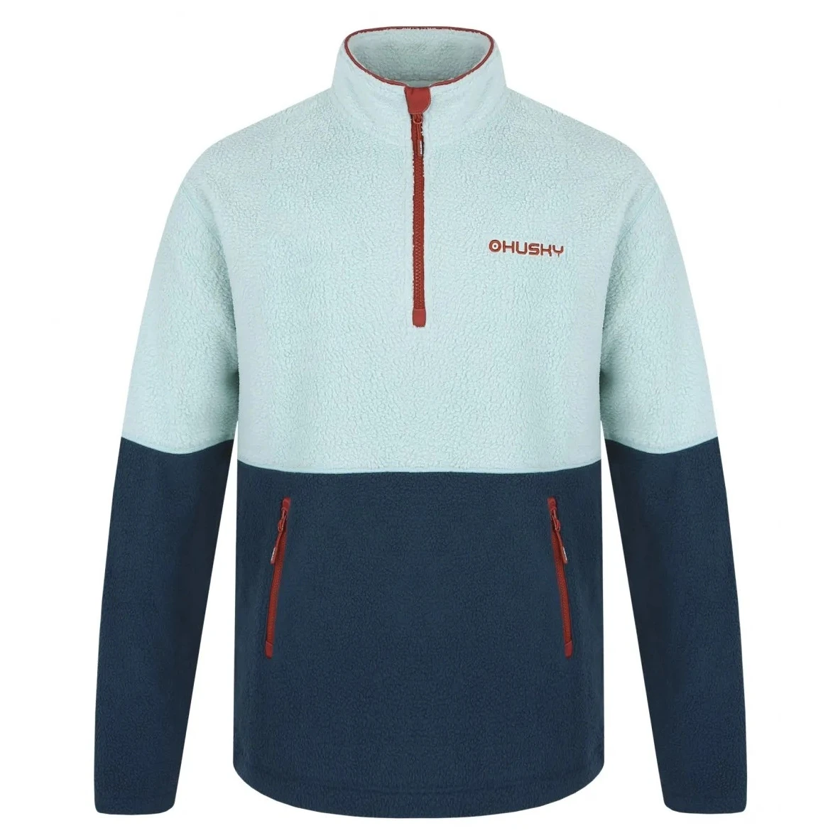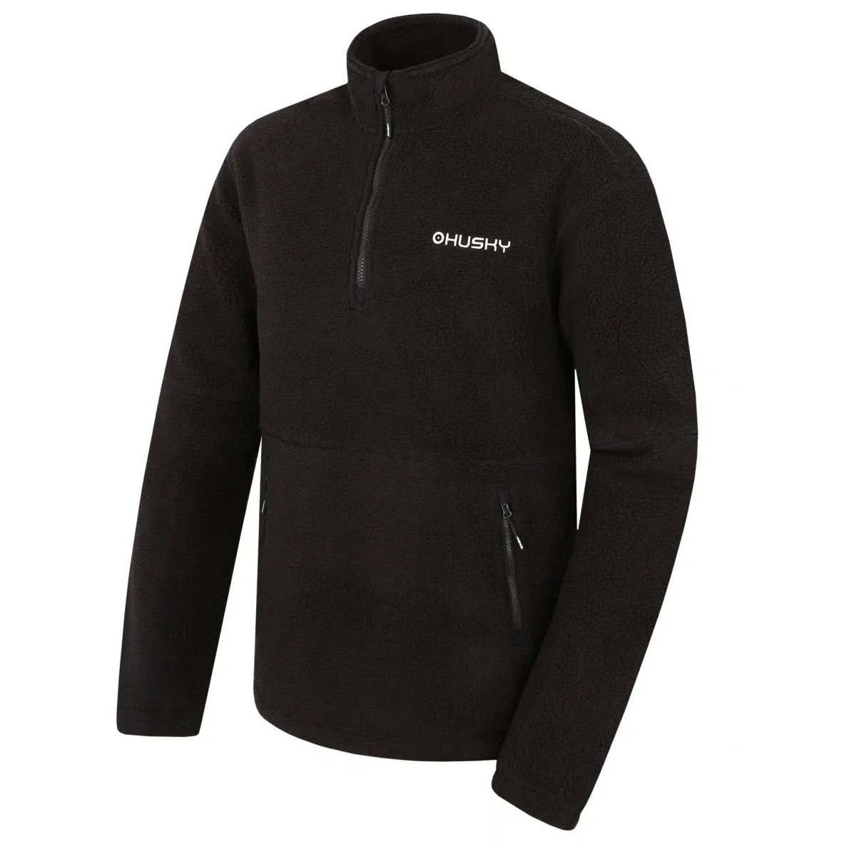 Materiał S-Therm jest drapany po stronie wewnętrznej, co zwiększa ciepło i elastyczność bluzy. Jest przyjemny w dotyku, łatwy w utrzymaniu, a dzięki antybakteryjnej obróbce pomaga ograniczyć powstawanie nieprzyjemnych zapachów. Doskonale odprowadza wilgoć z ciała, dzięki czemu utrzymuje suchość nawet podczas aktywności fizycznej. Praktyczny stójka chroni szyję przed zimnem, zamek błyskawiczny jest przykryty przy brodzie dla większego komfortu, a zewnętrzna kieszeń typu „kangurka” zapewnia miejsce na drobiazgi i ogrzanie rąk.