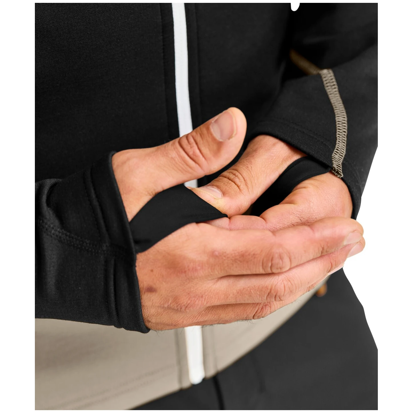 otwory na kciuki i dopasowany kaptur chroniący przed wiatrem