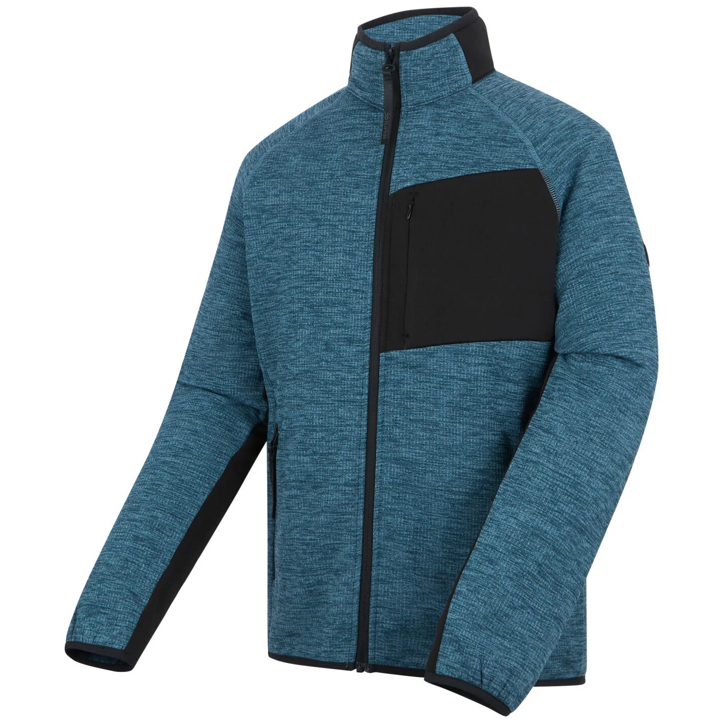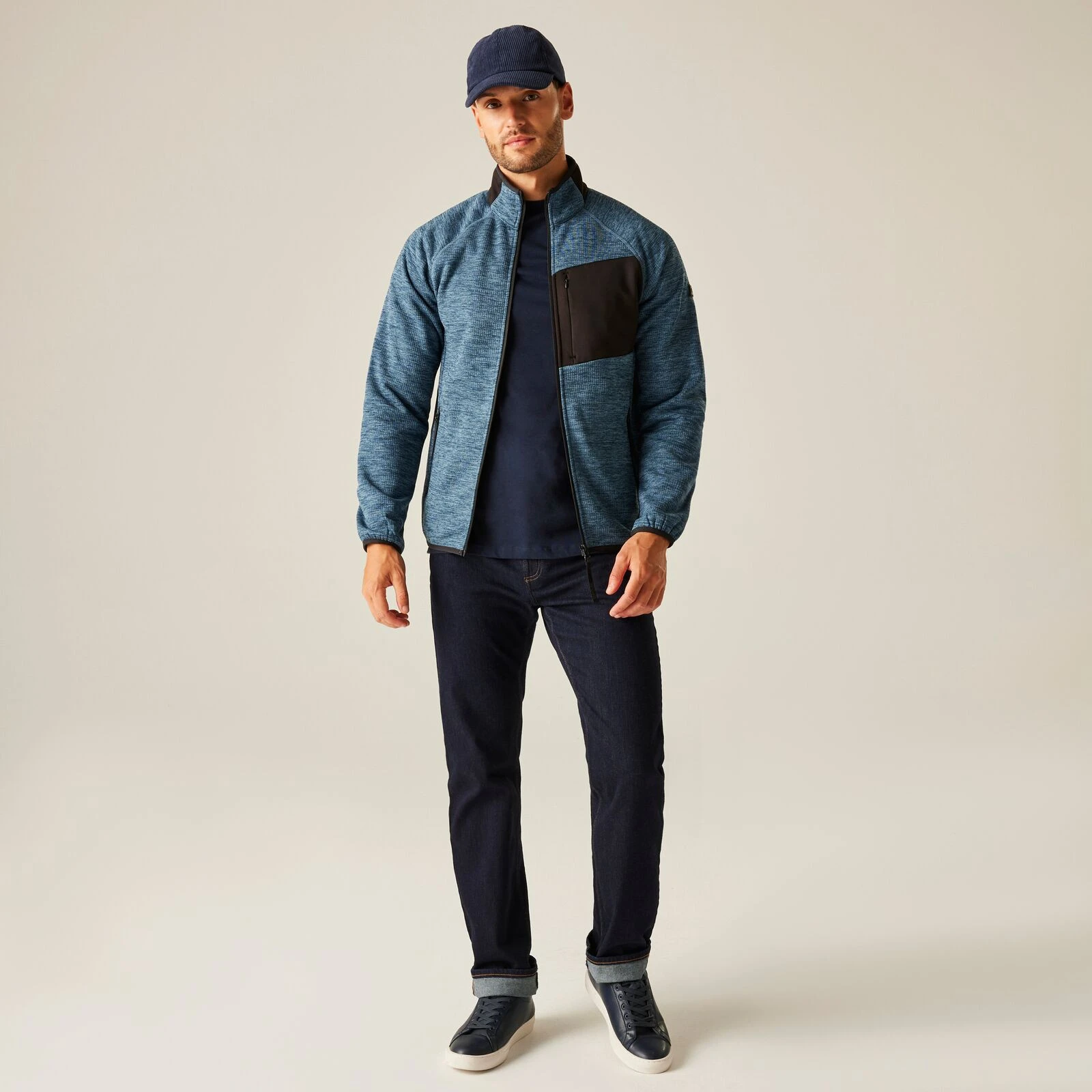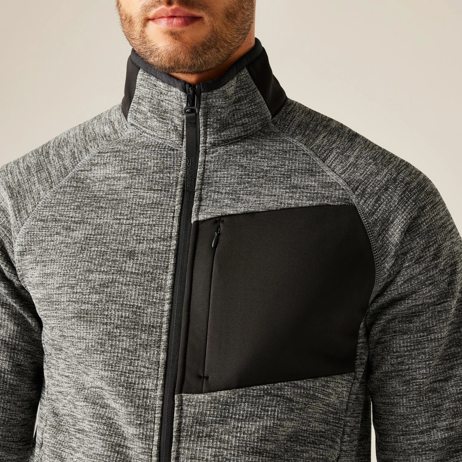 Męska bluza polarowa Salzance marki Regatta jest ciepła, elastyczna i gotowa na przygody. Jest wykonana z tkaniny polarowej o żakardowym wyglądzie i rozciągliwymi panelami Extol dla izolacji i swobody ruchów. Taśma grosgrain na kołnierzu dodaje bluzie nutę wyrafinowania, a kieszenie na zamek i elastyczne wykończenie zapewniają praktyczność.
