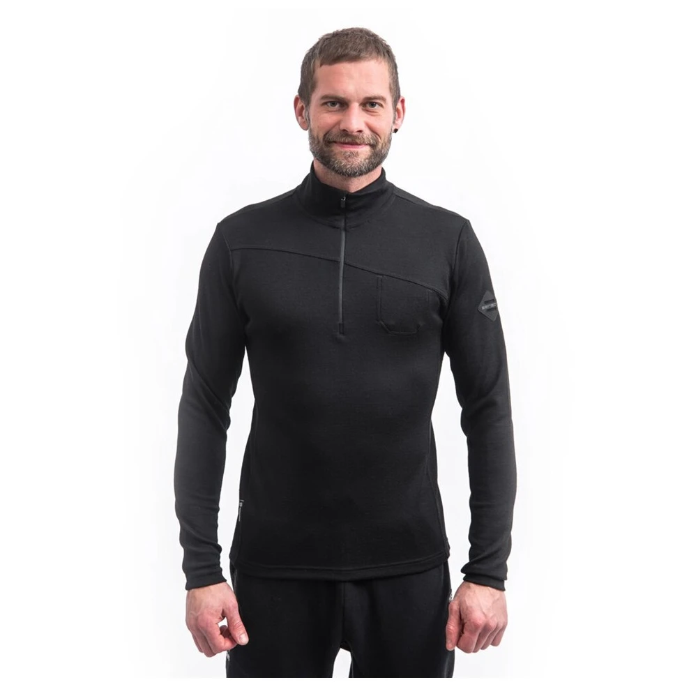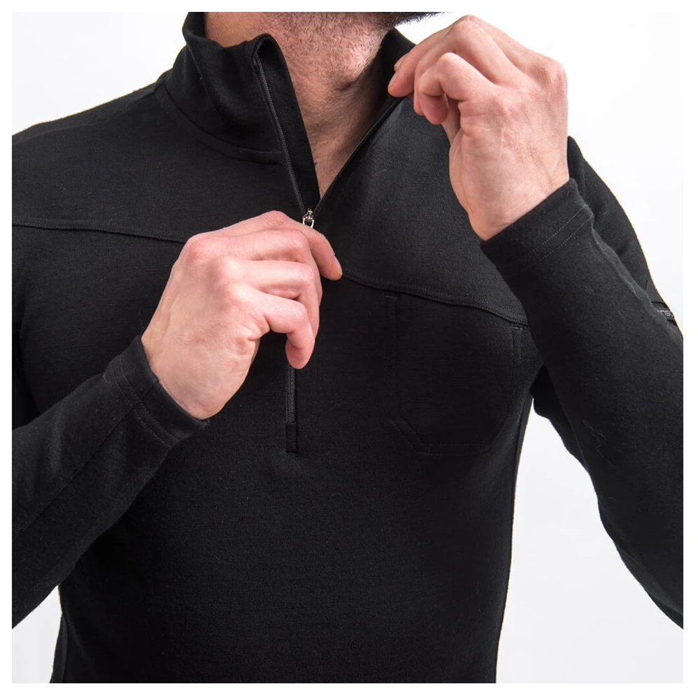 Wełna merino dba o naturalną termoregulację – utrzymuje ciepło ciała nawet w chłodne dni, a jednocześnie odprowadza wilgoć podczas wysiłku fizycznego. Dzięki zawartości lanoliny ma dodatkowo właściwości antybakteryjne, dzięki czemu bluza pozostaje świeża nawet po dłuższym noszeniu. Poliamidowy jedwab zwiększa wytrzymałość, elastyczność i stabilność kształtu, co wydłuża żywotność i zapewnia wygodę ruchów. Praktyczny zamek błyskawiczny pod szyją umożliwia łatwą regulację temperatury i zwiększa ogólny komfort noszenia.