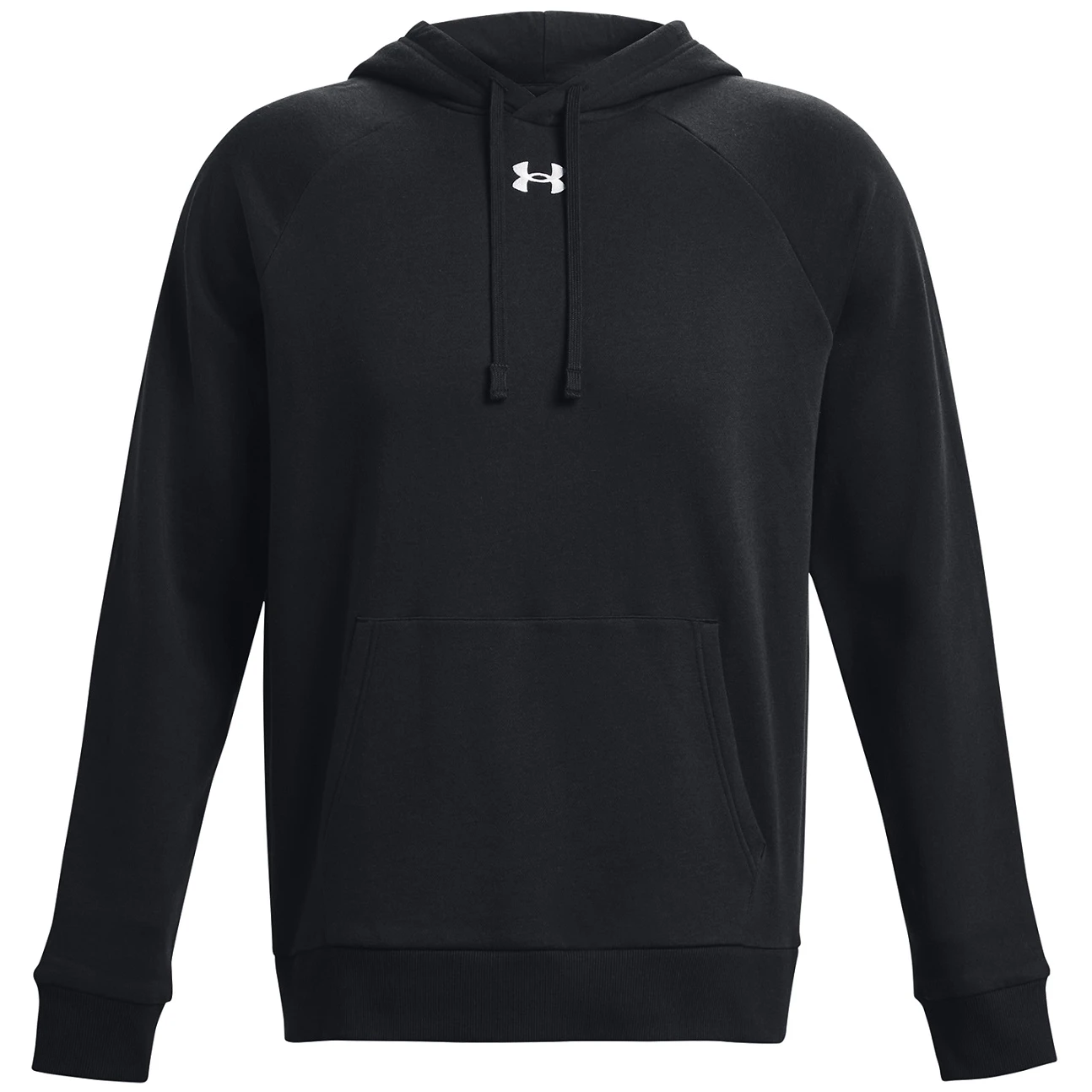 Męska bluza Under Armour Rival Fleece Hoodie jest wykonana z miękkiego polaru z dodatkiem bawełny. Materiał ten jest bardzo wygodny w noszeniu. Bluza ma kieszeń kangurkę i kaptur ze sznurkiem ściągającym. Dół i mankiety wykonane są z elastycznego materiału w prążki.