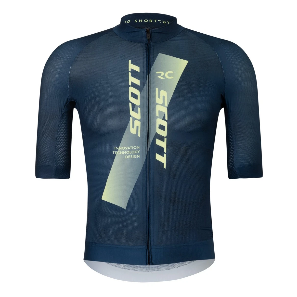 Scott RC Pro to męska koszulka rowerowa z krótkim rękawem, idealna do wyścigów i jazdy wyczynowej z naciskiem na aerodynamikę i komfort.