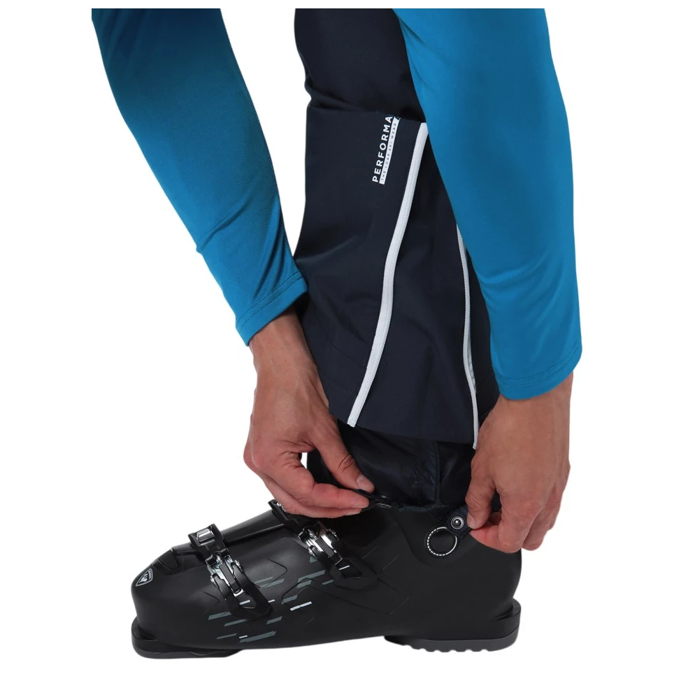 Spodnie mają klasyczny krój, wewnętrzne elastyczne nogawki przeciwśnieżne oraz dolne krawędzie zapinane na zamek i zatrzask, dzięki czemu łatwo je naciągniesz na buty narciarskie. Nie brakuje odpinanych szelek z logo, które utrzymują spodnie na miejscu, oraz dwóch praktycznych kieszeni zewnętrznych na niezbędne drobiazgi.