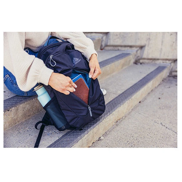 Plecak Retna 25 marki Gregory ma panel tylny z pianki o różnej gęstości i z siateczki Airmesh dla wygodnego noszenia. Wszystkie tkaniny wykonane są z materiału pochodzącego z recyklingu, co prowadzi do 59% redukcji śladu węglowego w porównaniu ze zwykłym nylonowym opakowaniem. Oczywistością jest ukształtowany, wyściełany pas naramienny z odpinanym pasem piersiowym i wyściełana przegroda na notebook z zewnętrznym dostępem. Podczas zwykłego codziennego noszenia docenisz również górną kieszeń na zamek błyskawiczny z szybkim dostępem i boczną kieszeń na butelkę z elastycznej siateczki.