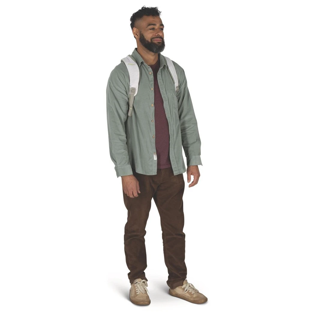 Miejski plecak Arcane Earth Large Day Osprey to połączenie nowoczesnego designu, praktycznej funkcjonalności i zrównoważonej produkcji. Wykonany jest z certyfikowanej przędzy ReComp™, która zawiera 100% włókien pochodzących z recyklingu, z czego 30% stanowią bezpośrednio odpady z produkcji. Ten proces nie tylko zmniejsza ilość odpadów na składowiskach, ale także przyczynia się do oszczędności wody i energii dzięki minimalnemu barwieniu.